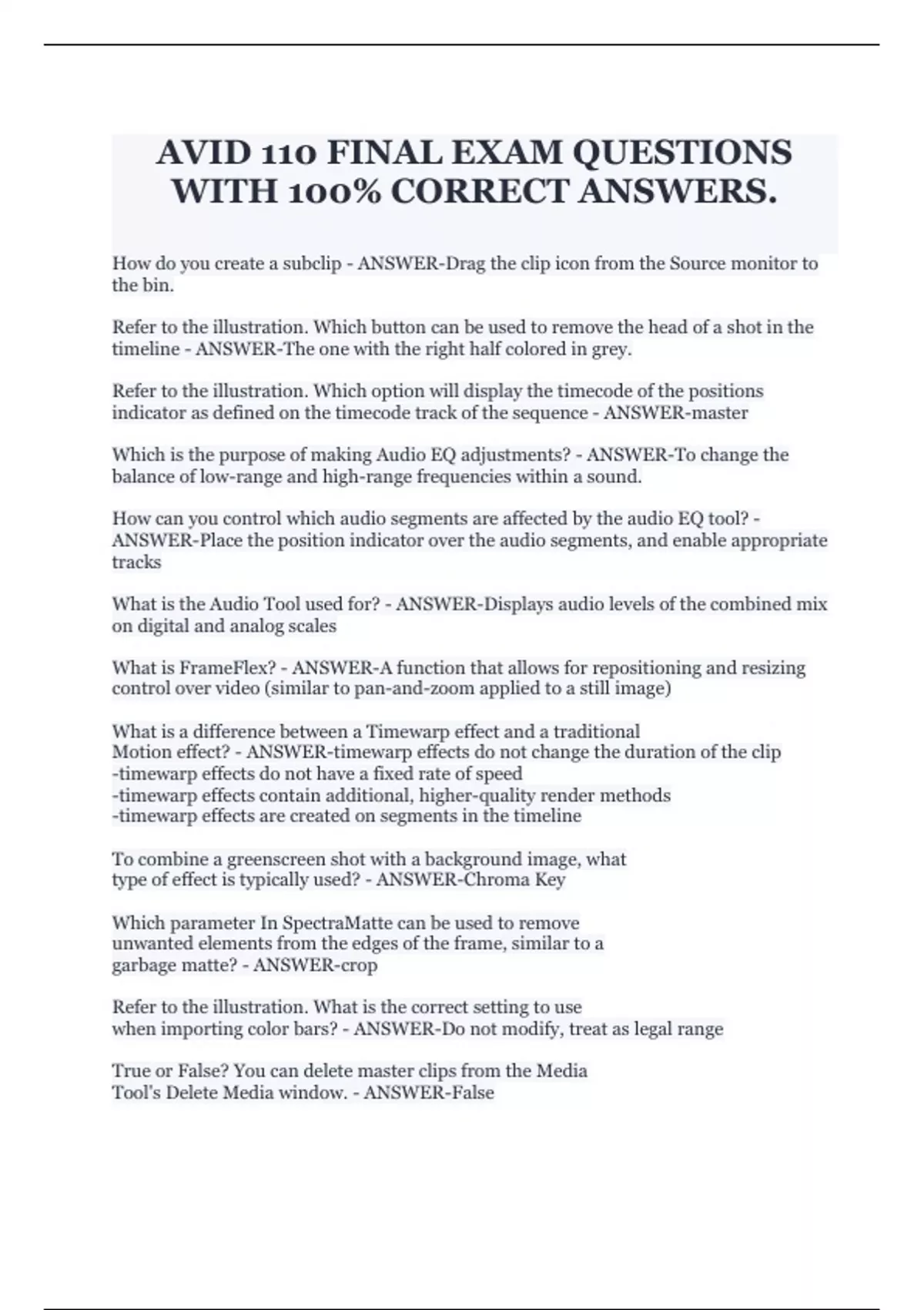 PACKAGE DEAL FOR MC110: AVID CERTIFICATION QUESTIONS WITH CORRECT DETAILED ANNSWERS