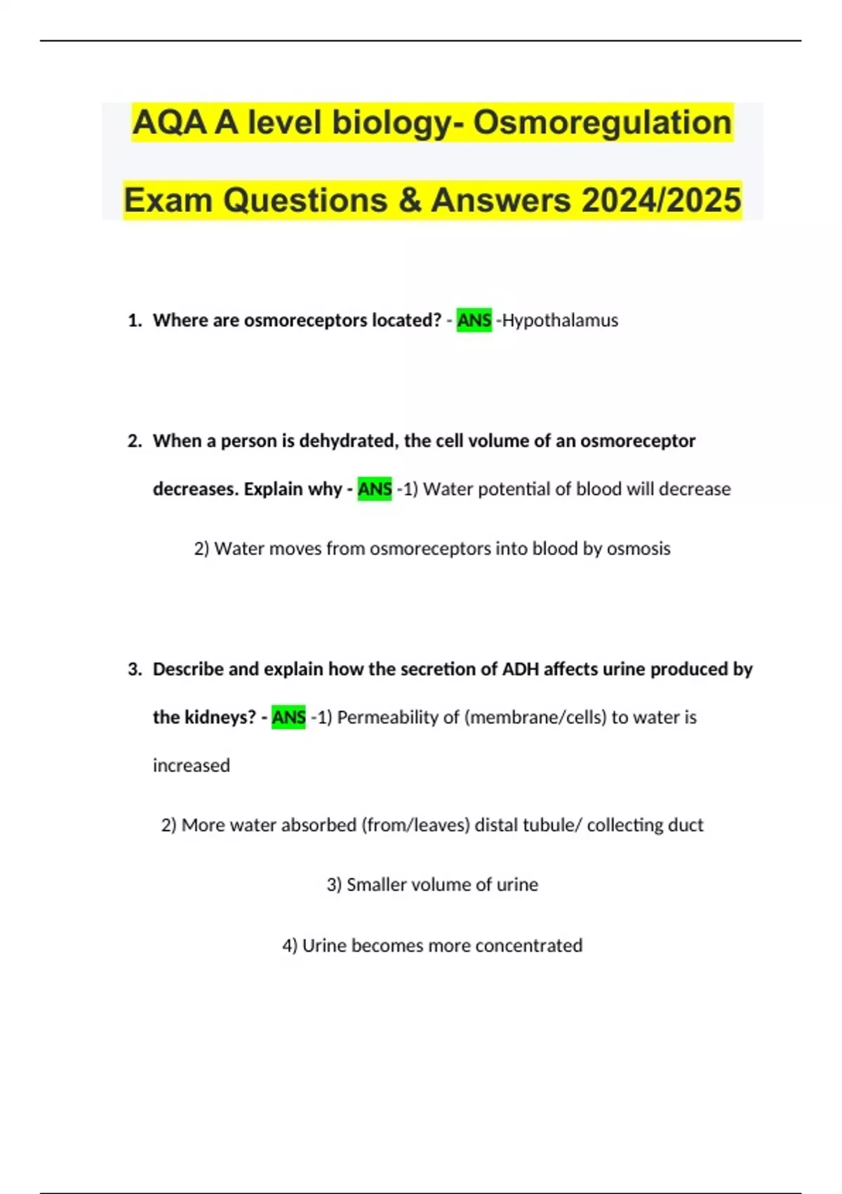 AQA A level biology- Osmoregulation Exam Questions & Answers