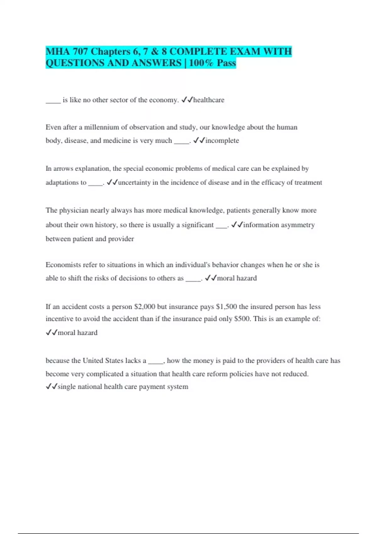 MHA 707 Chapters 6, 7 & 8 COMPLETE EXAM WITH QUESTIONS AND ANSWERS | 100% Pass