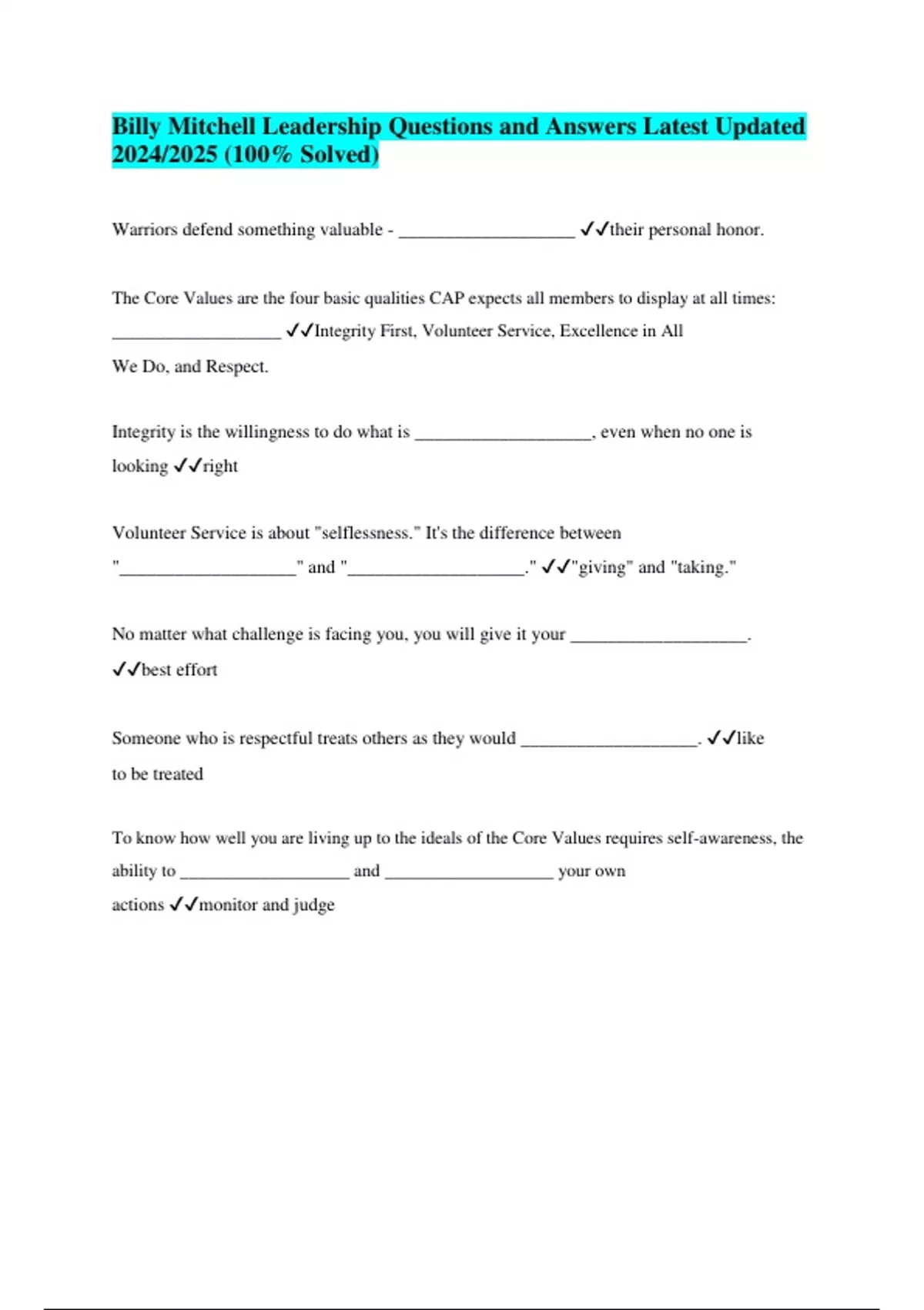 Billy Mitchell Leadership Questions and Answers Latest Updated 2024/2025 (100% Solved)