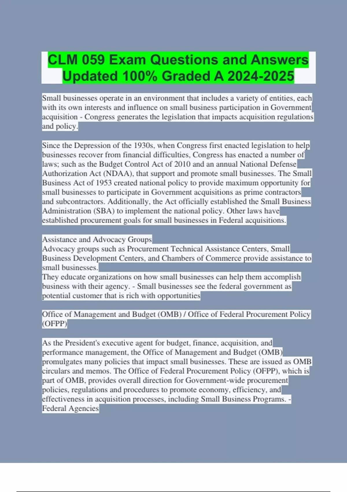 CLM 059 Exam Questions and Answers Updated 100% Graded A