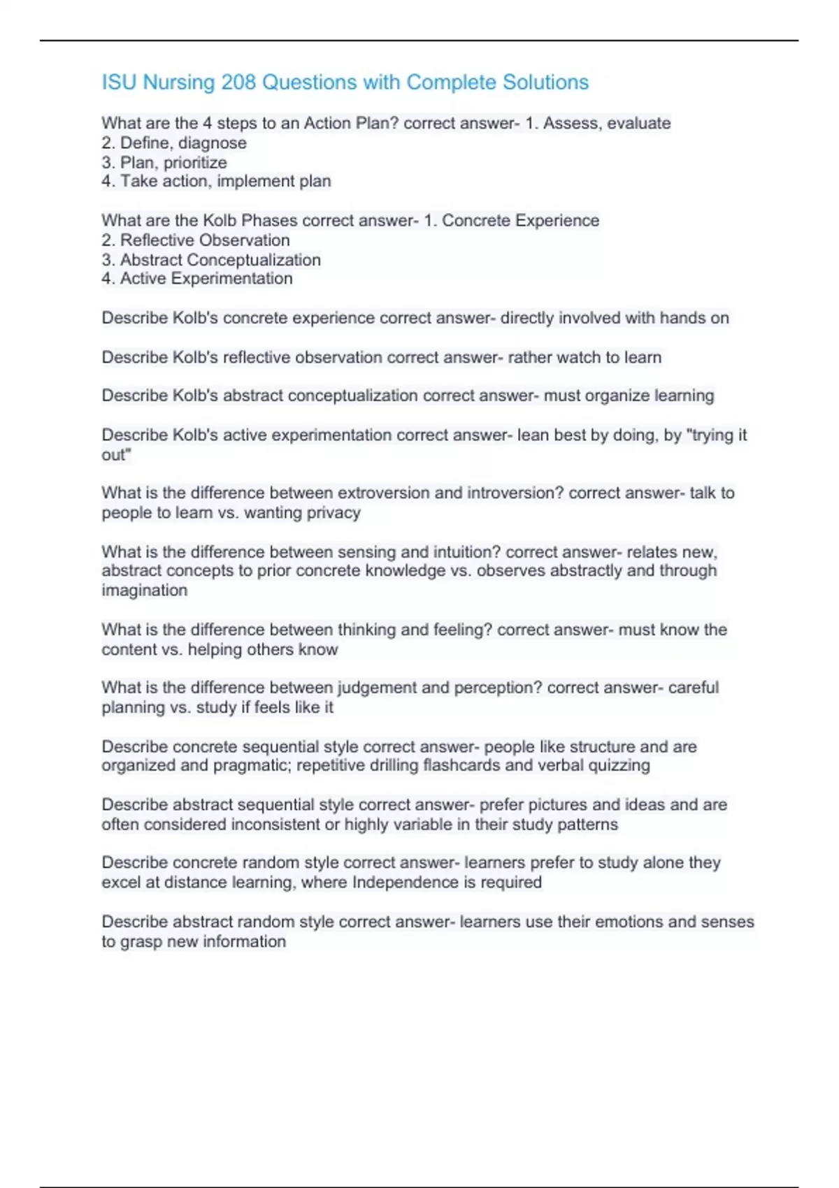 ISU Nursing 208 Questions with Complete SolutionsISU Nursing 208 Questions with Complete Solutions