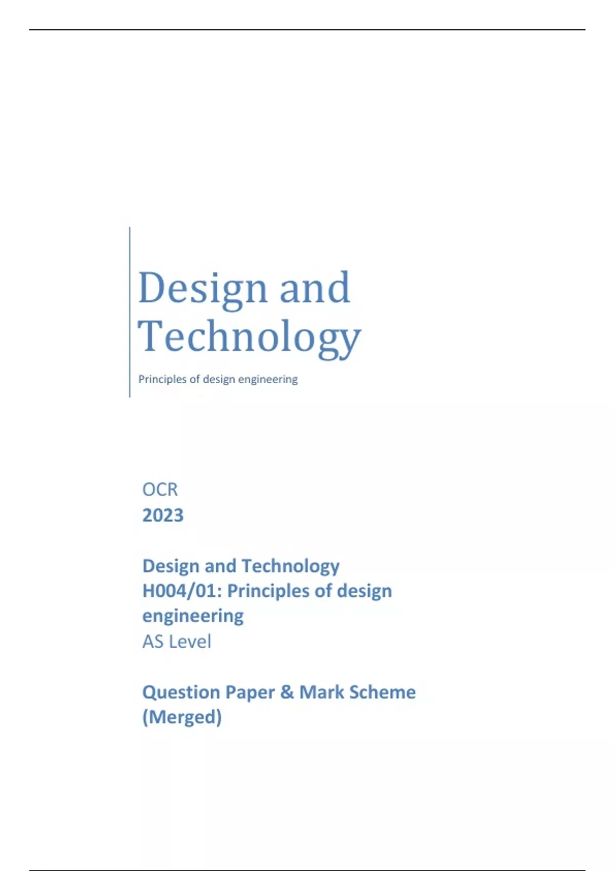 OCR 2023 Design and Technology H004/01:Principlesofdesign engineering ASLevel QuestionPaper&MarkScheme