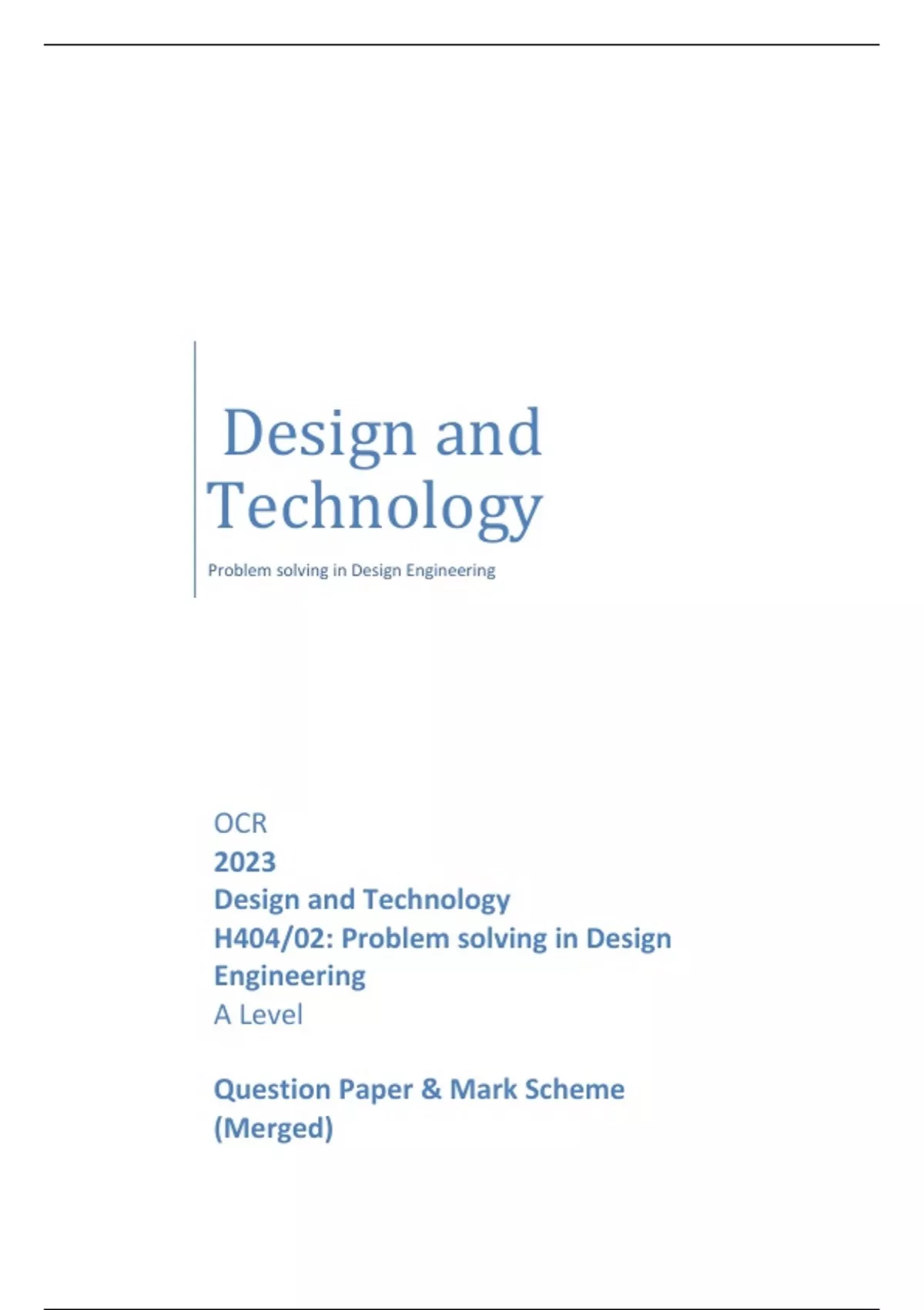 OCR 2023 Design and Technology H404/02: Problem solving in Design Engineering A Level