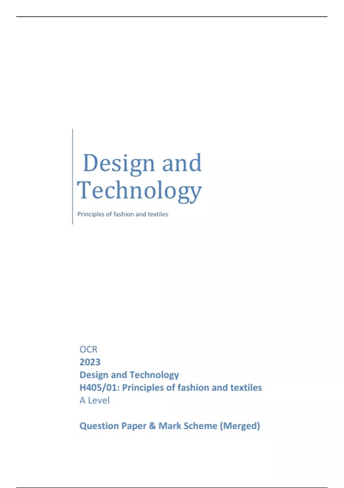 OCR 2023 Designand Technology H405/01:Principlesoffashion and textiles A Level QuestionPaper&MarkScheme (Merged)