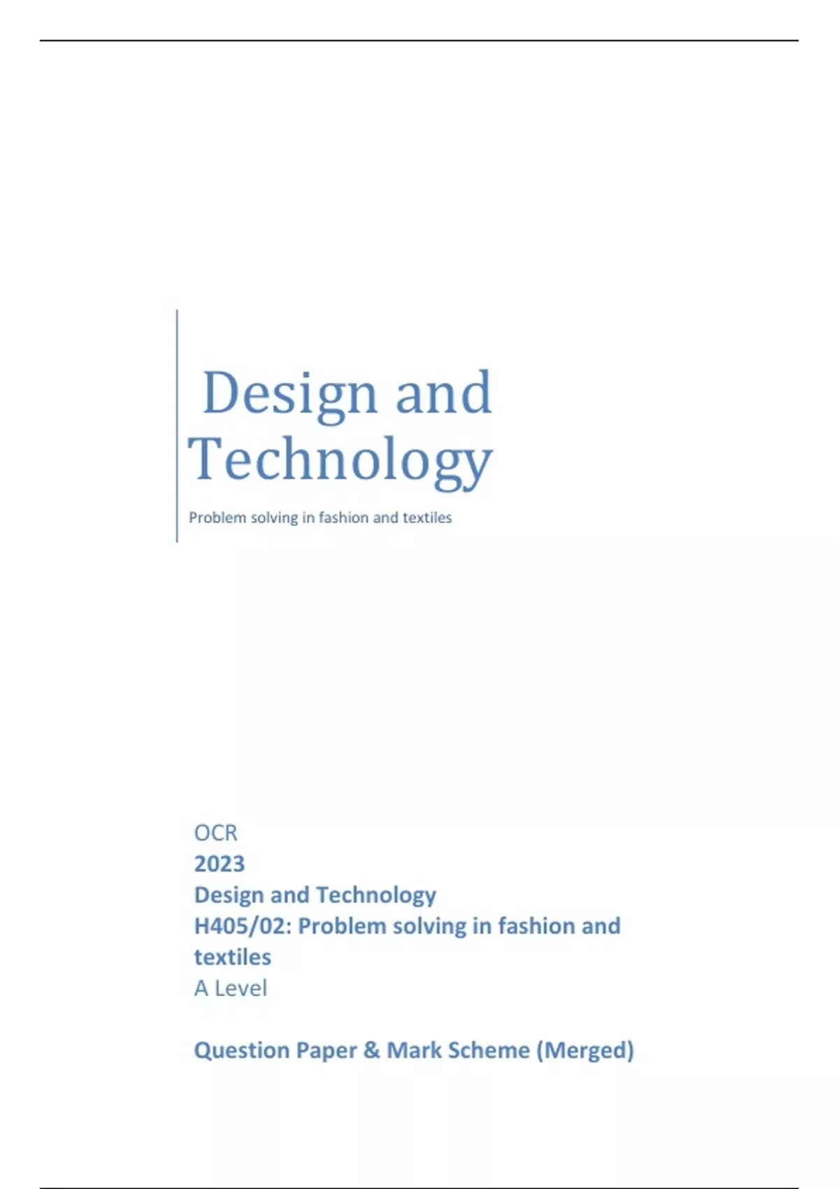 OCR 2023 Designand Technology H405/02:Problemsolvinginfashionand textiles A Level QuestionPaper&MarkScheme (Merged)