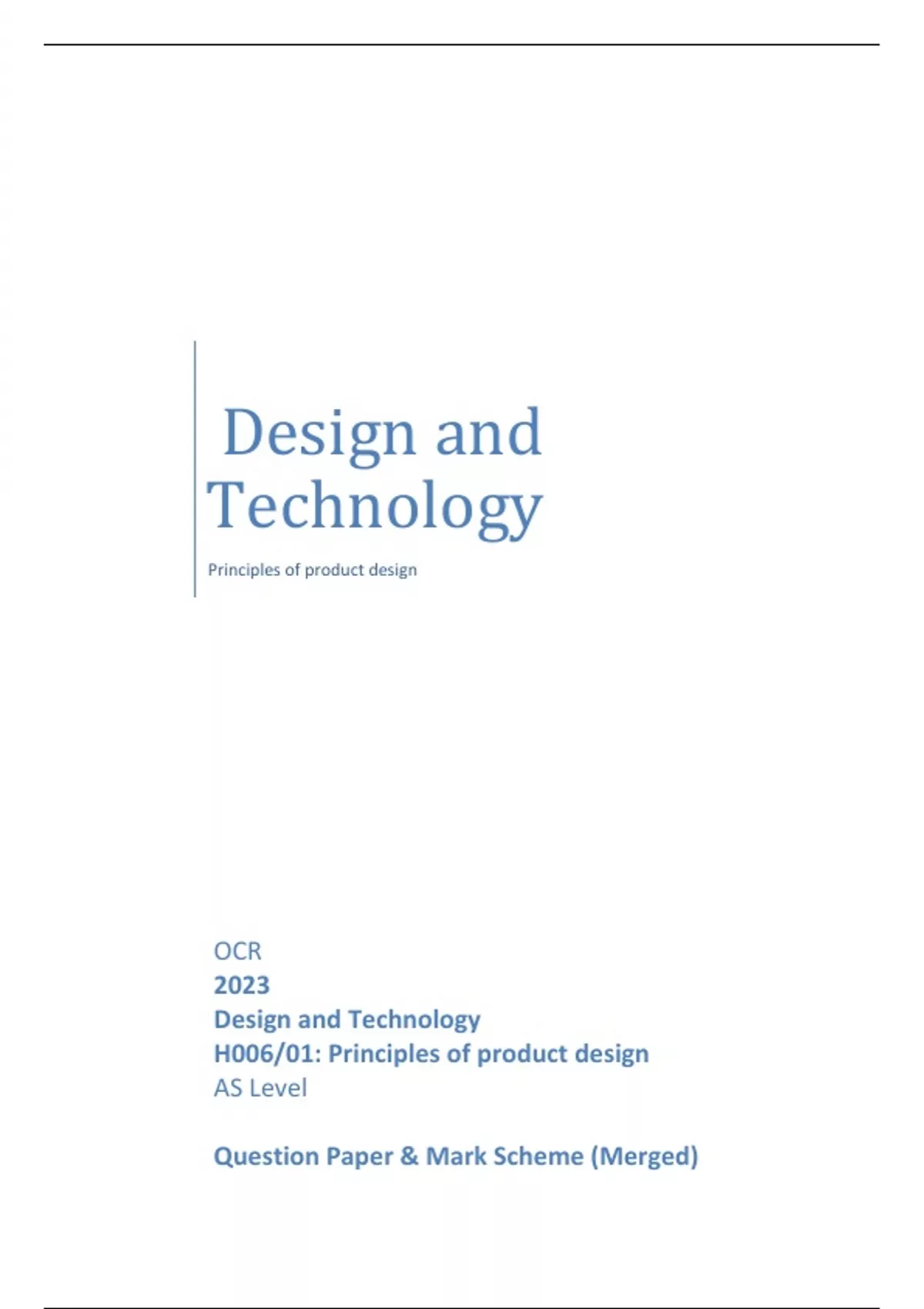 OCR 2023 Designand Technology H006/01:Principlesofproduct design AS Level QuestionPaper&MarkScheme (Merged)