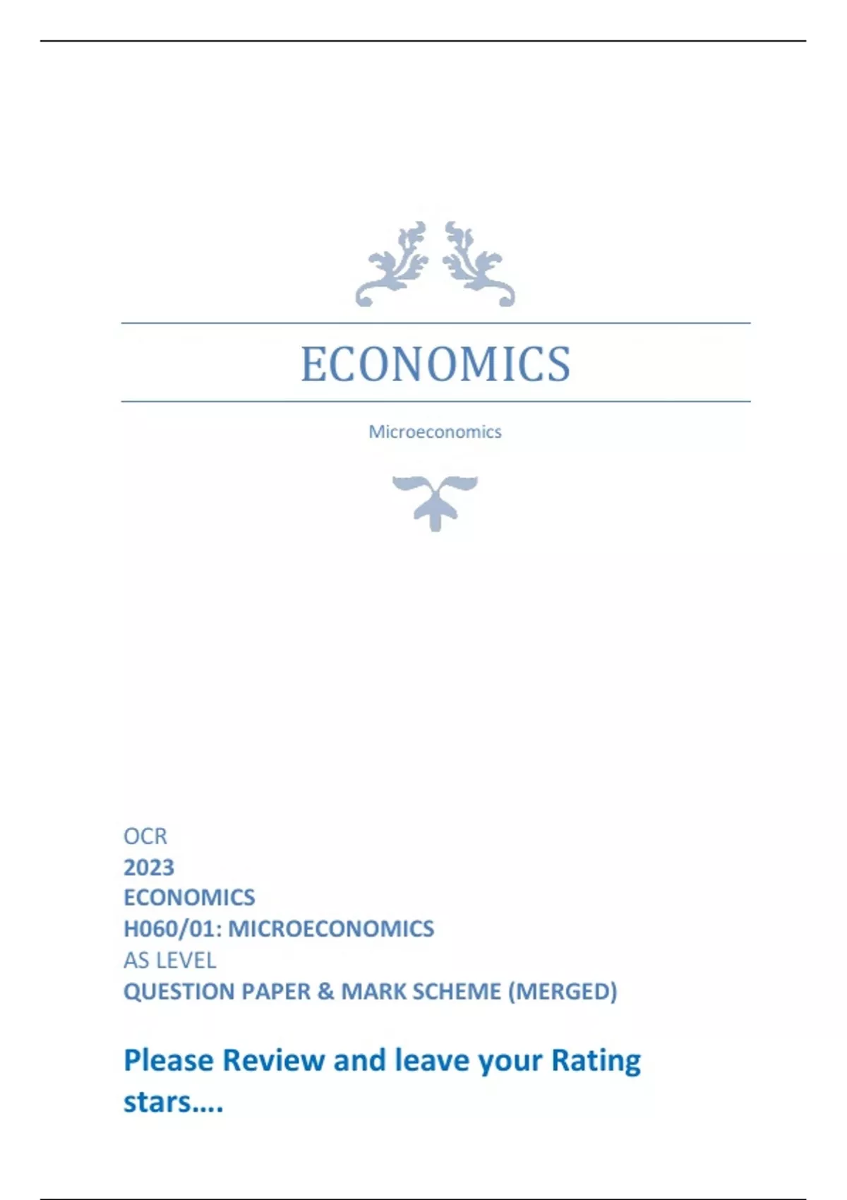 OCR 2023 ECONOMICS H060/01: MICROECONOMICS AS LEVEL QUESTION PAPER & MARK SCHEME (MERGED)