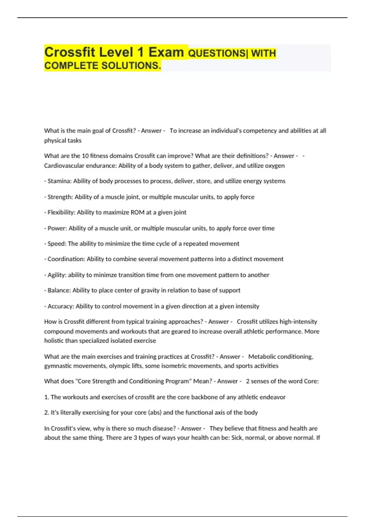 crossfit level 1 exam questions with complete solu
