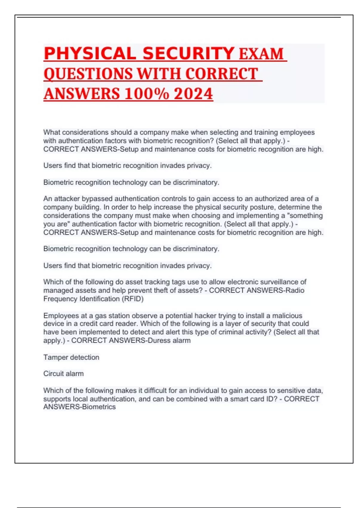 PHYSICAL SECURITY E XAM QUESTIONS WITH CORRECT ANSWERS 100% 2024