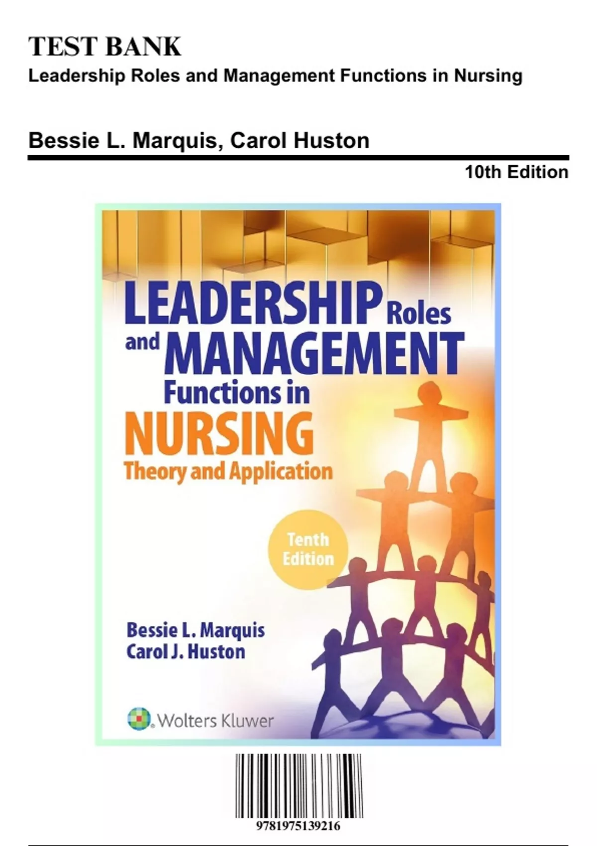 Test Bank for Leadership Roles and Management Functions in Nursing, 10th Edition by Marquis, 9781975139216, Covering Chapters 1-25 | Includes Rationales