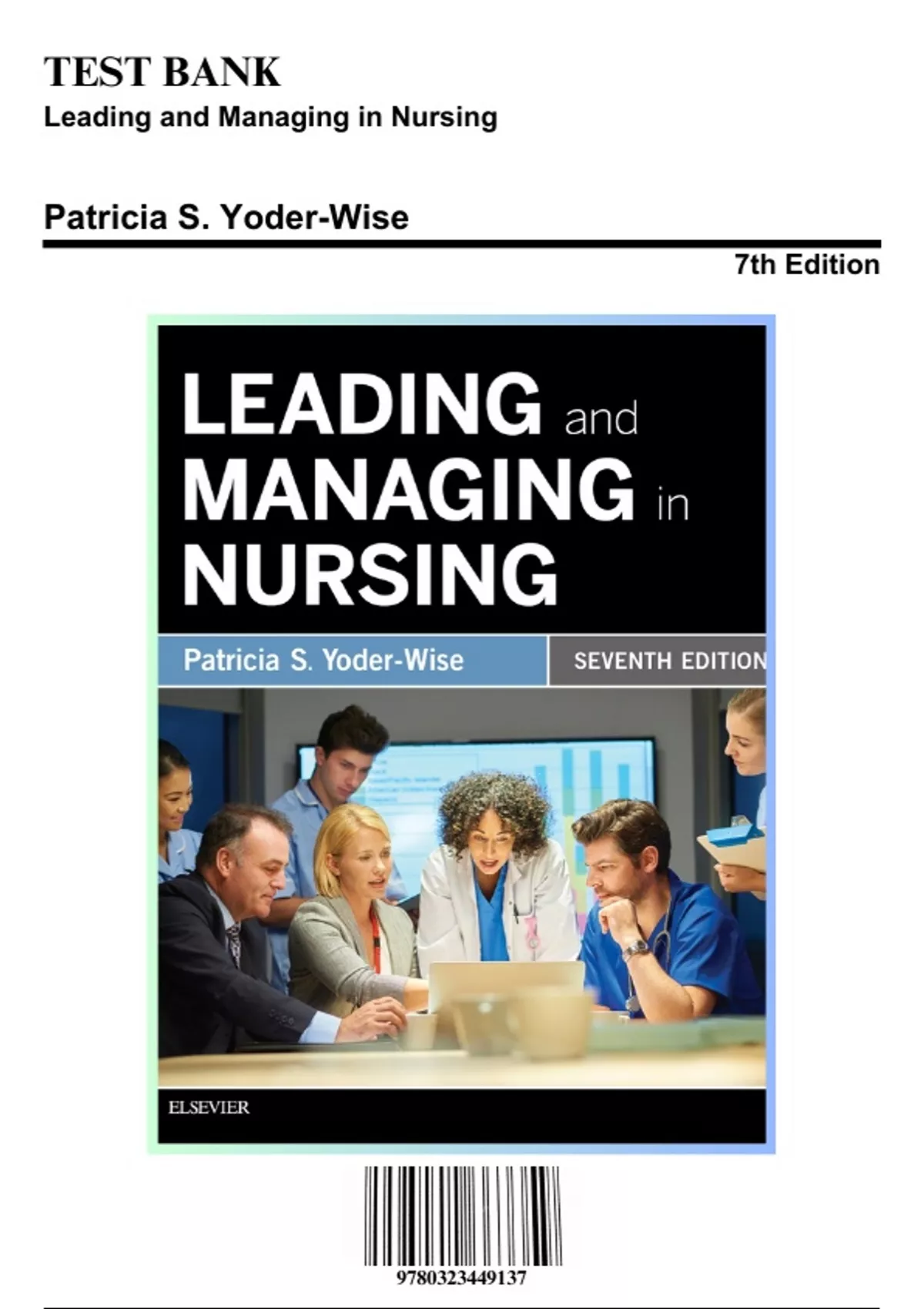 Test Bank for Leading and Managing in Nursing, 7th Edition by YoderWise, 9780323449137, Covering Chapters 1-31 | Includes Rationales