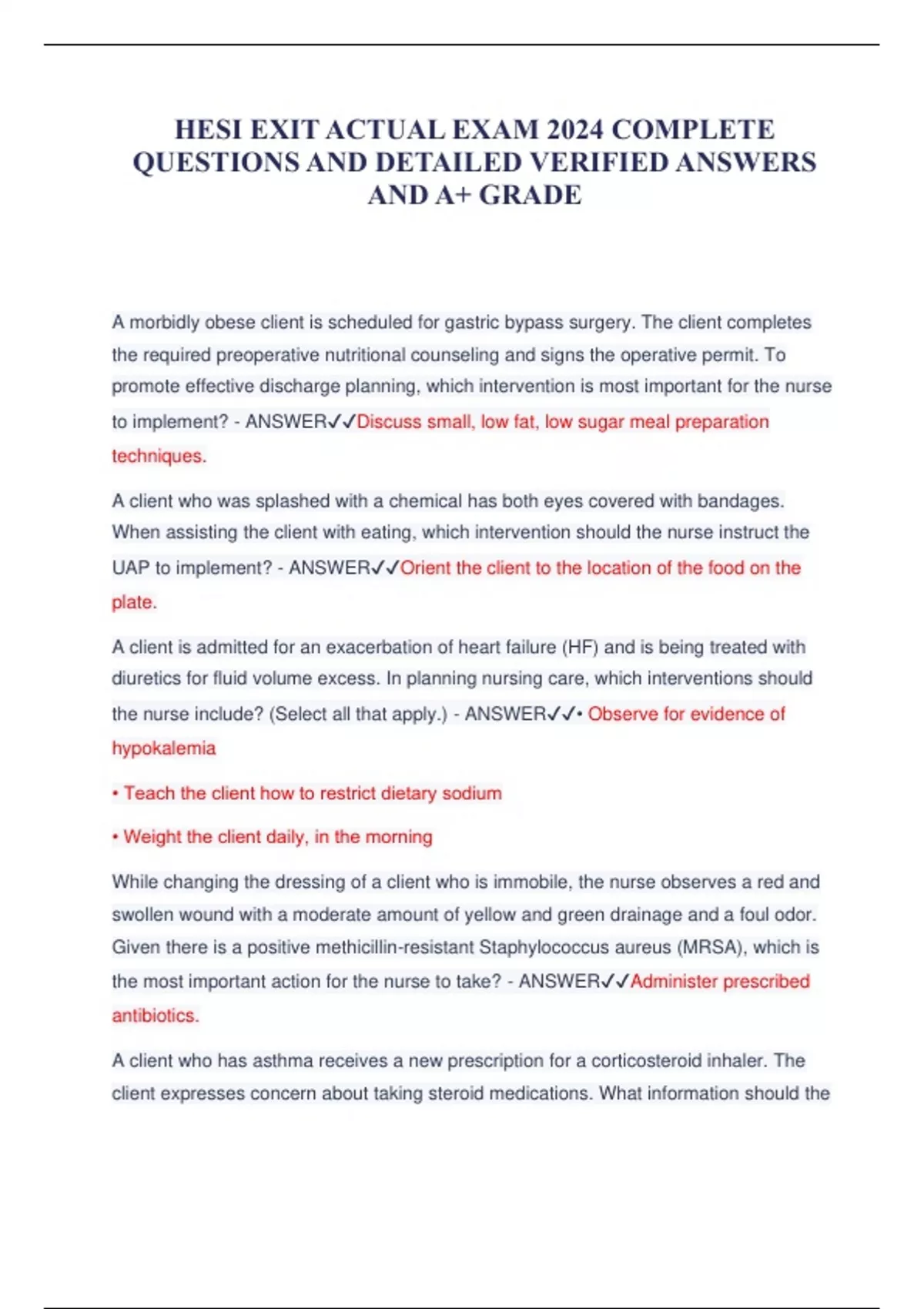 HESI EXIT ACTUAL EXAM 2024 COMPLETE QUESTIONS AND DETAILED VERIFIED ANSWERS AND A+ GRADE
