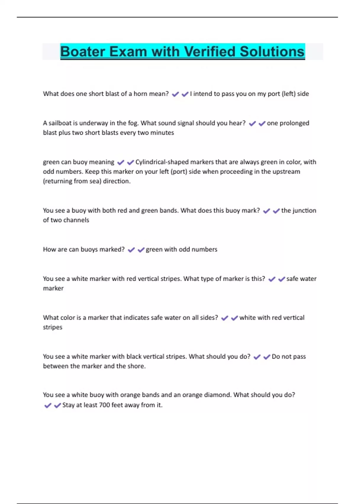 Boater Exam with Verified Solutions