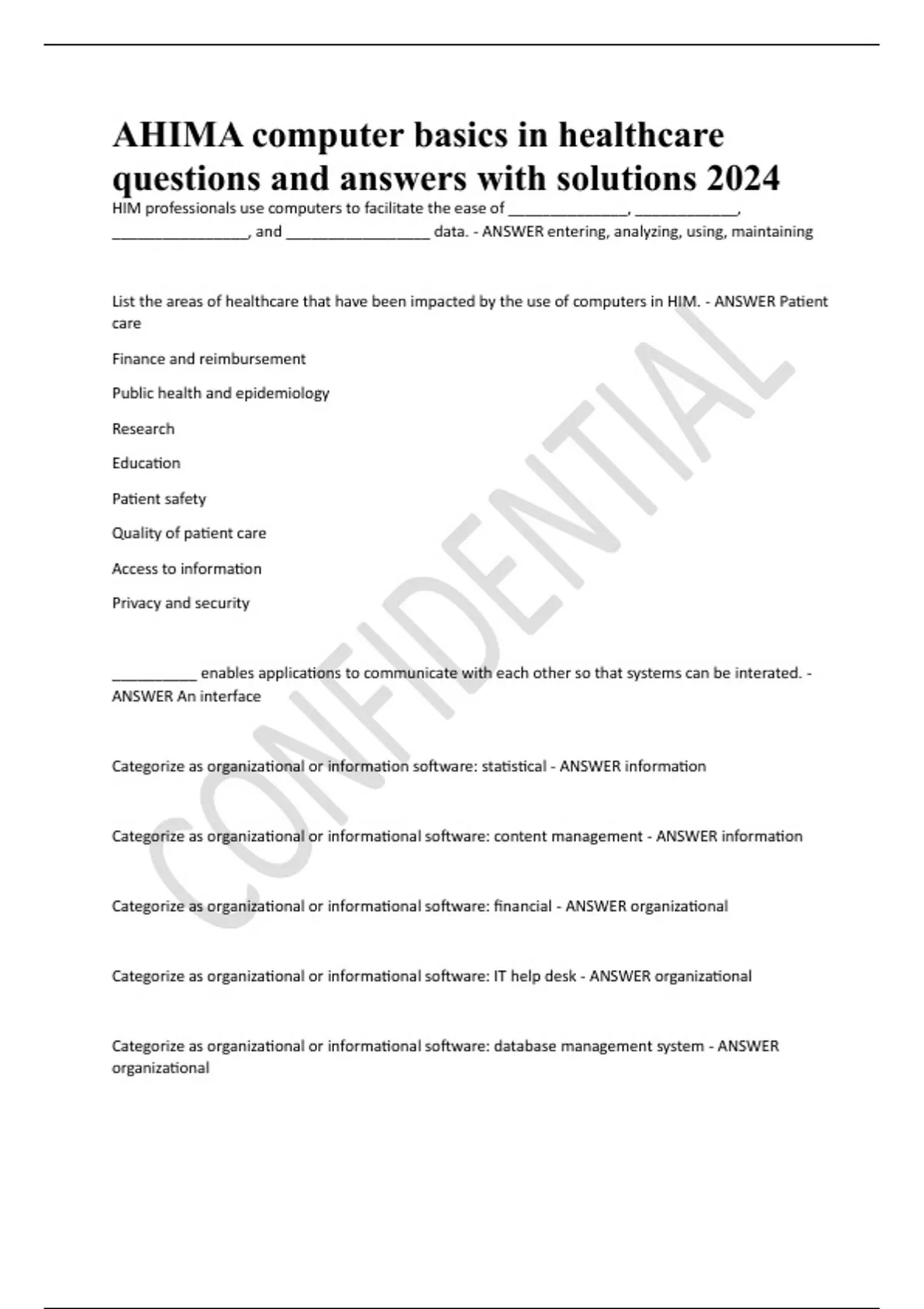 AHIMA computer basics in healthcare questions and answers with solutions 2024