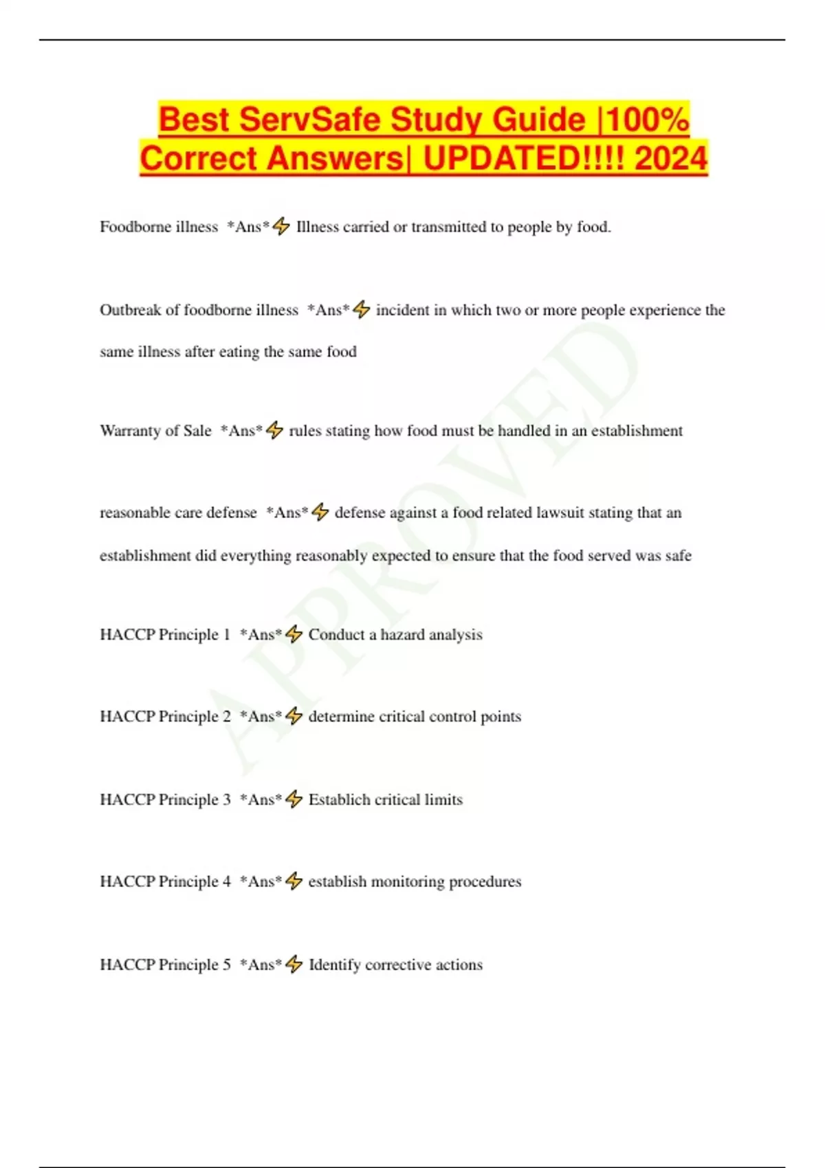 Best ServSafe Study Guide |100% Correct Answers| UPDATED!!!! 2024