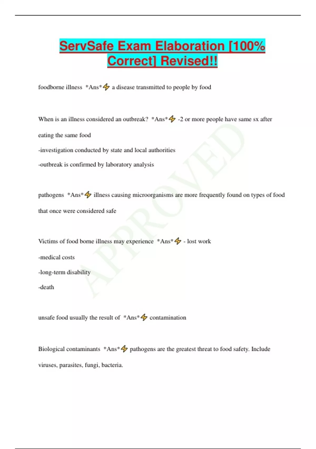 ServSafe Exam Elaboration [100% Correct] Revised!!