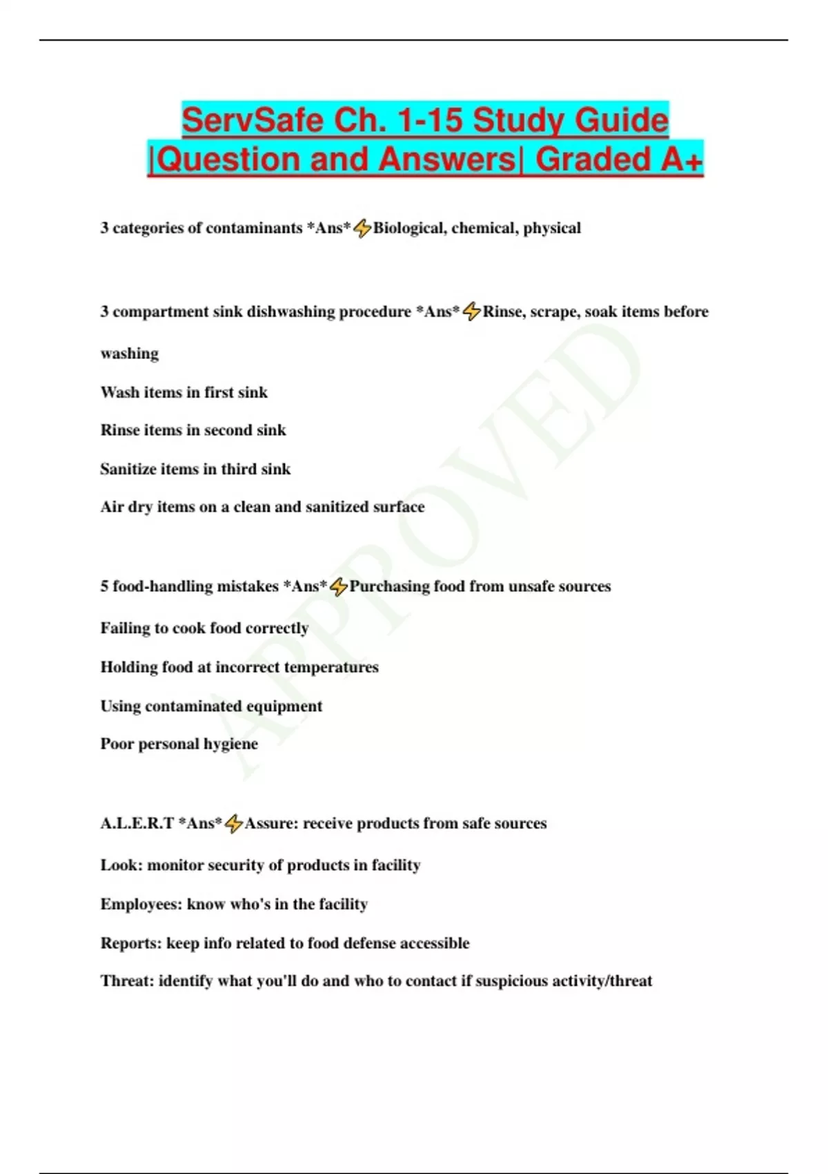 ServSafe Ch. 1-15 Study Guide |Question and Answers| Graded A+