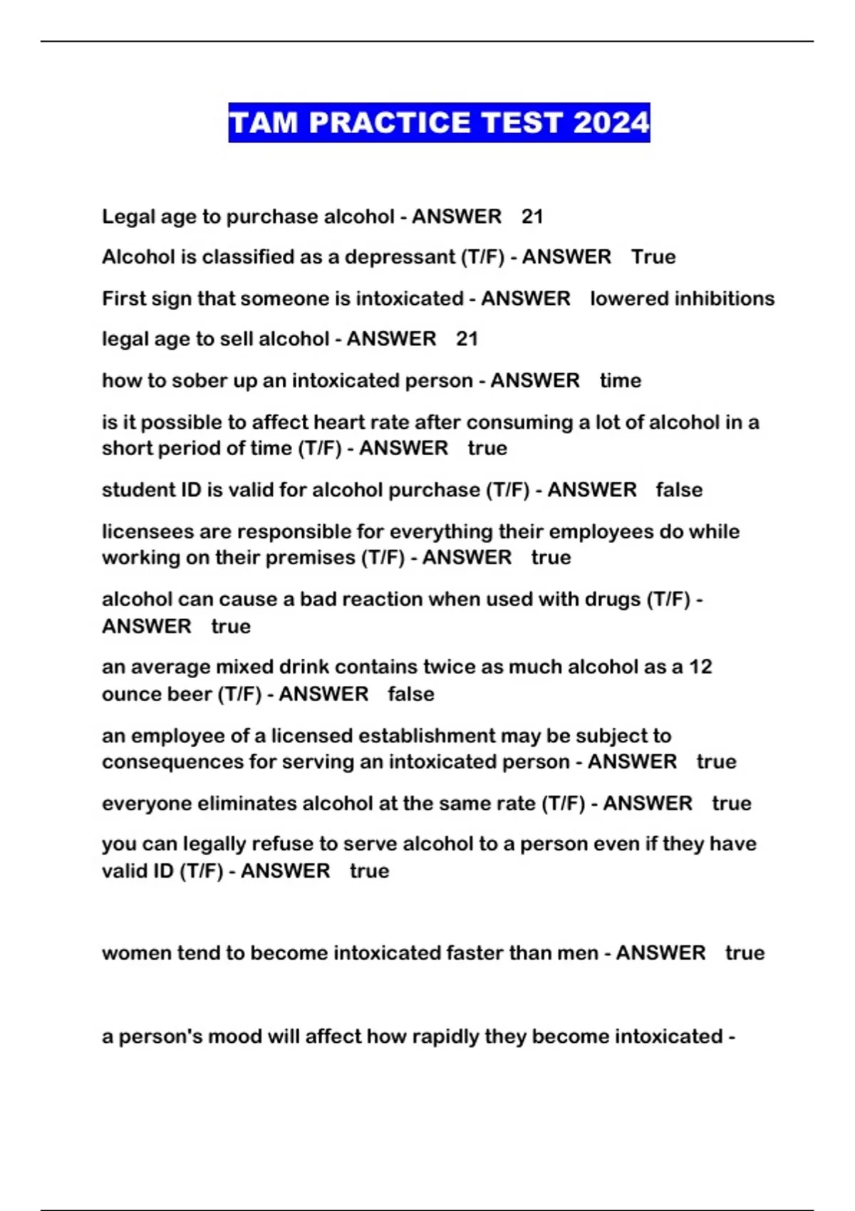 TAM PRACTICE TEST 2024...