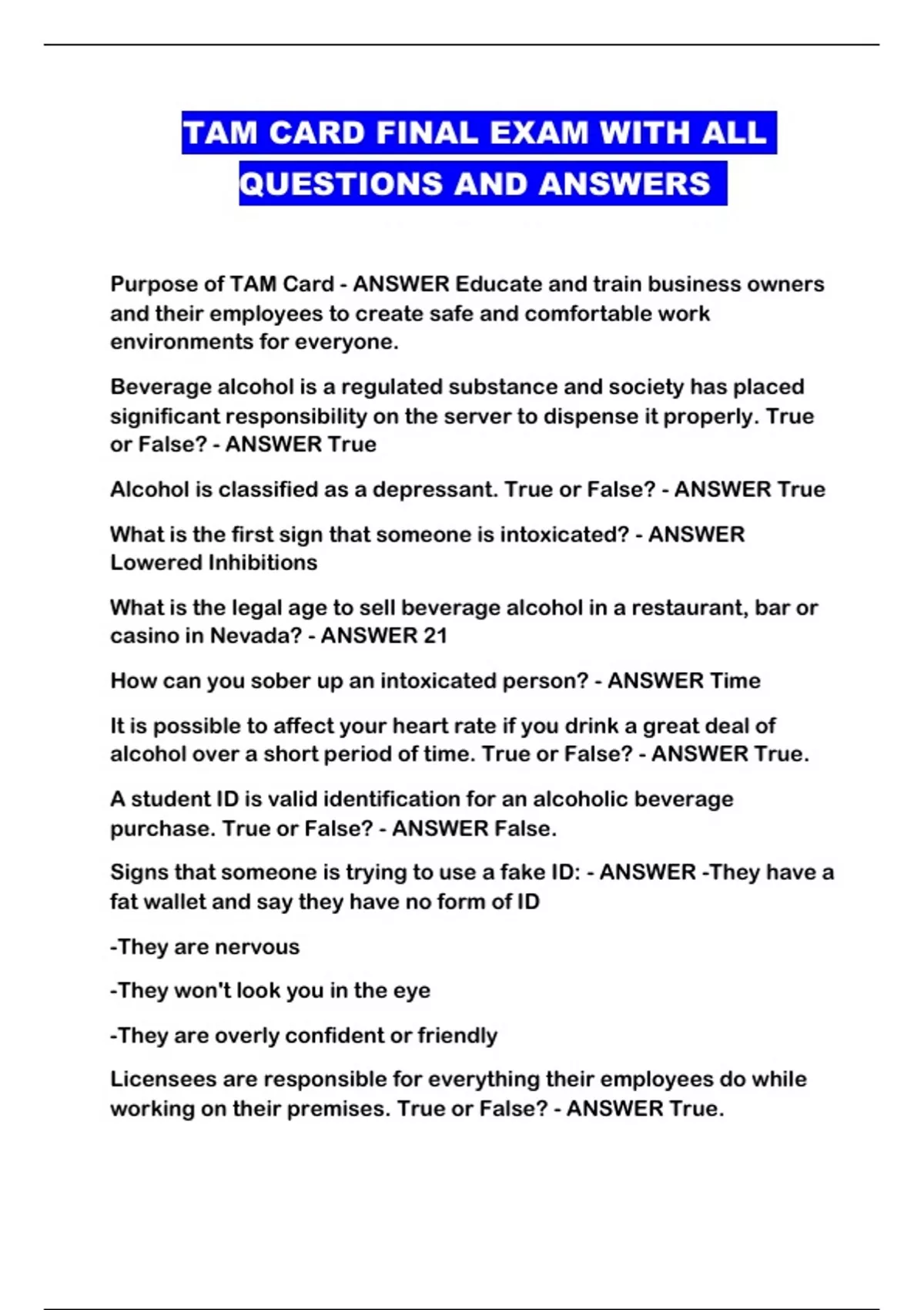 TAM CARD FINAL EXAM WITH ALL QUESTIONS AND ANSWERS ...