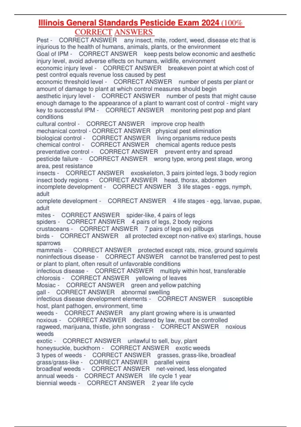 Illinois General Standards Pesticide Exam 2024 (100% CORRECT ANSWERS WITH COMPLETE SOLUTIONS
