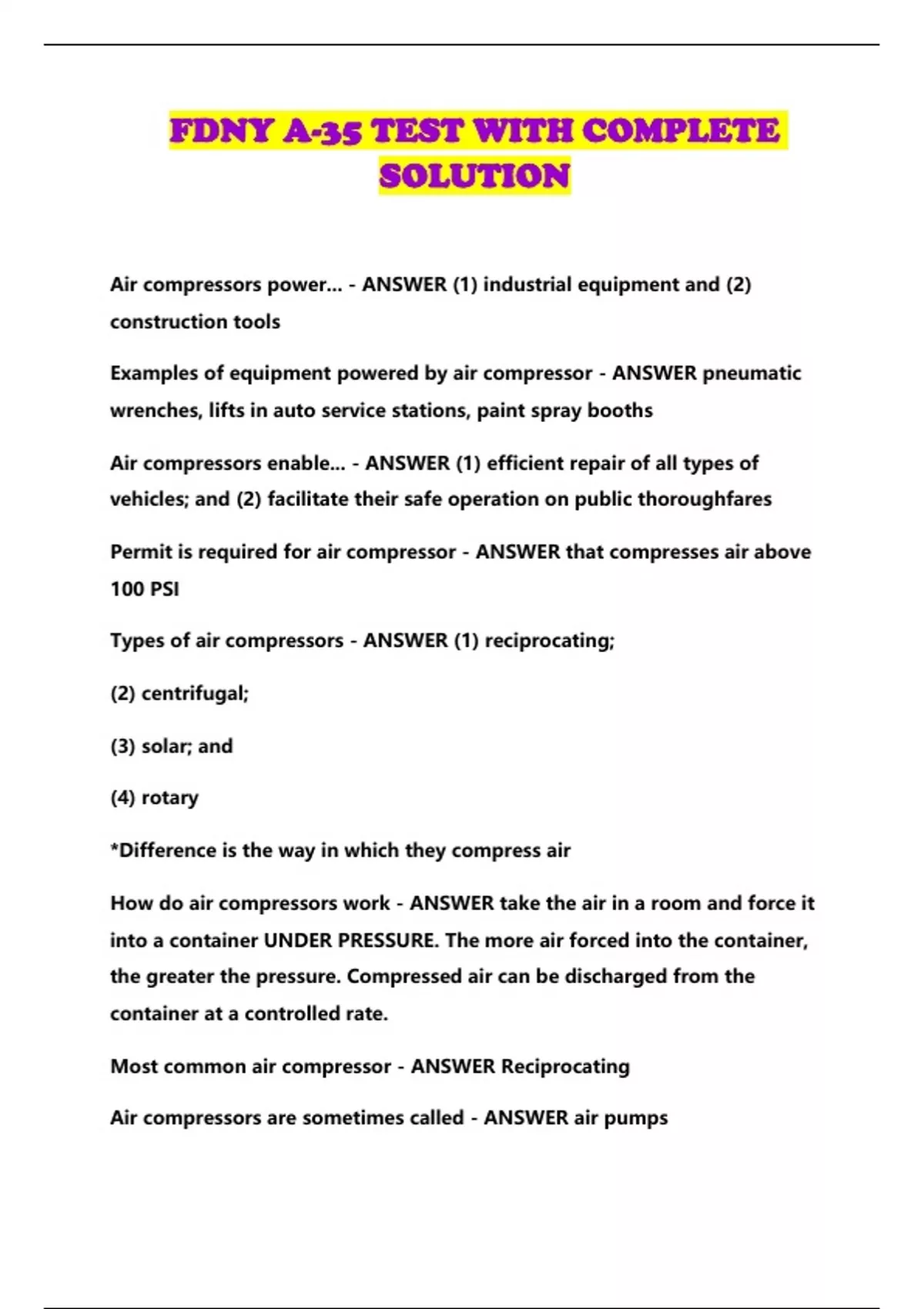 FDNY A-35 TEST WITH COMPLETE SOLUTION...