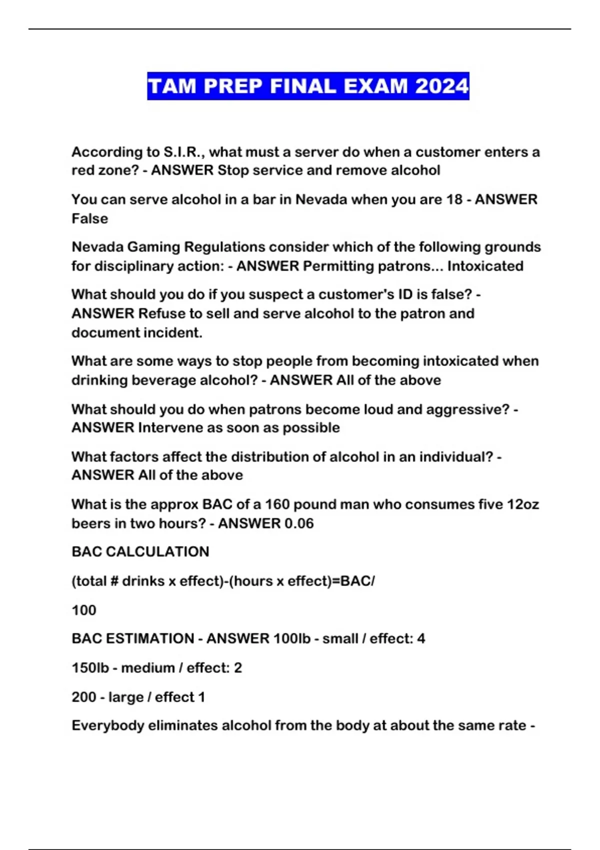 TAM PREP FINAL EXAM 2024...