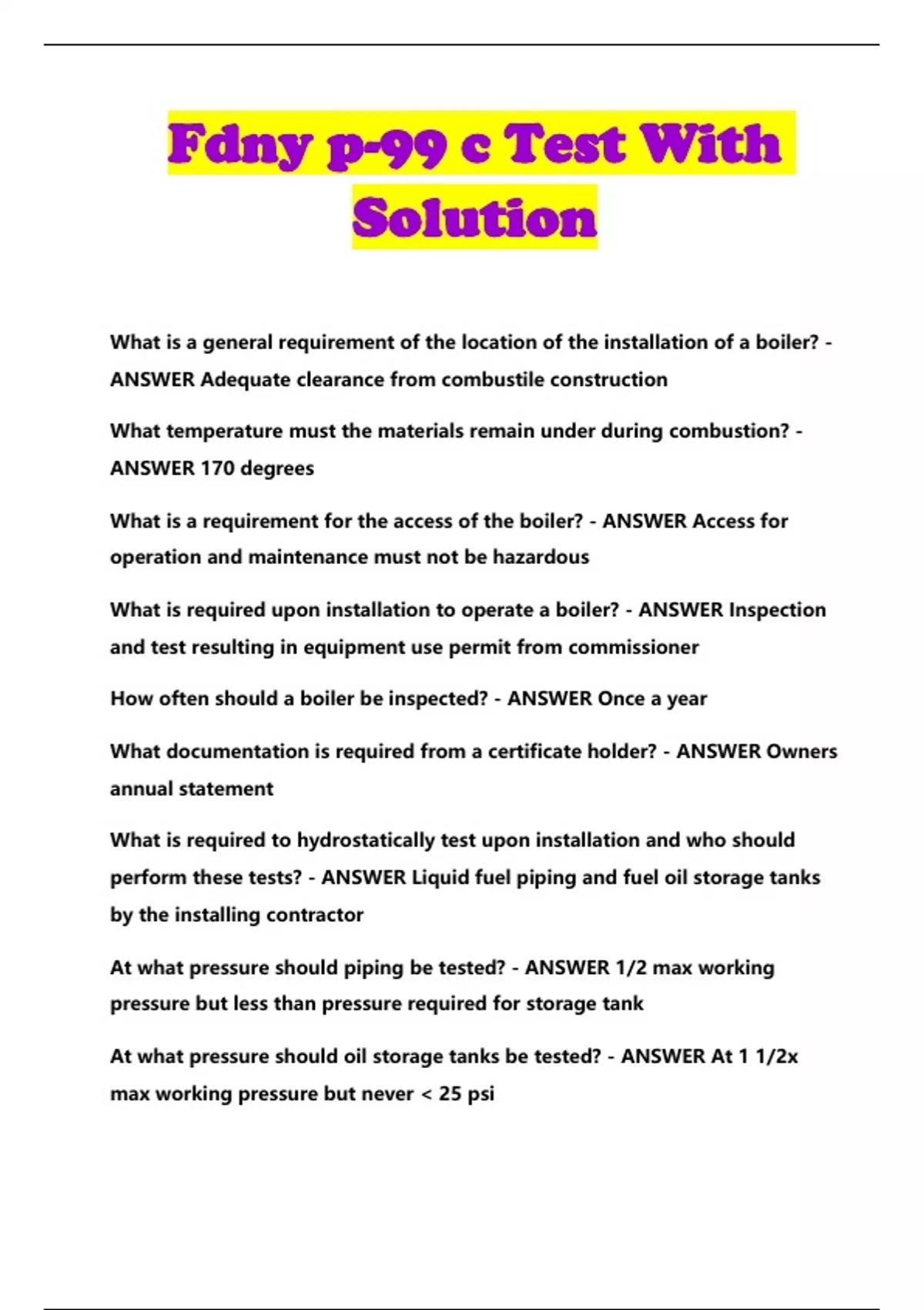 fdny p 99 c test with solution