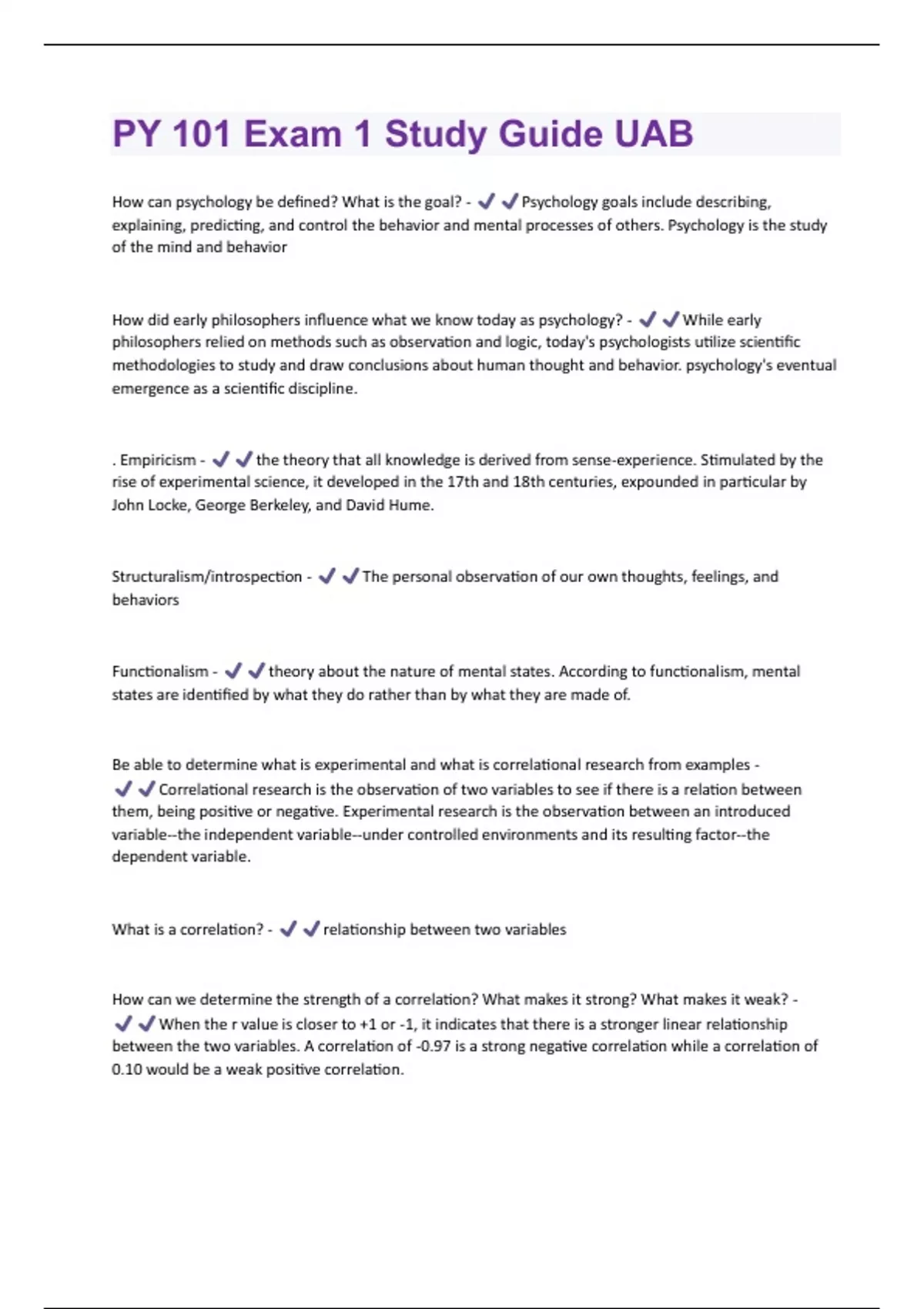 PY 101 Exam 1 Study Guide UAB Questions And Answers With Verified Tests 100% Correct Answers