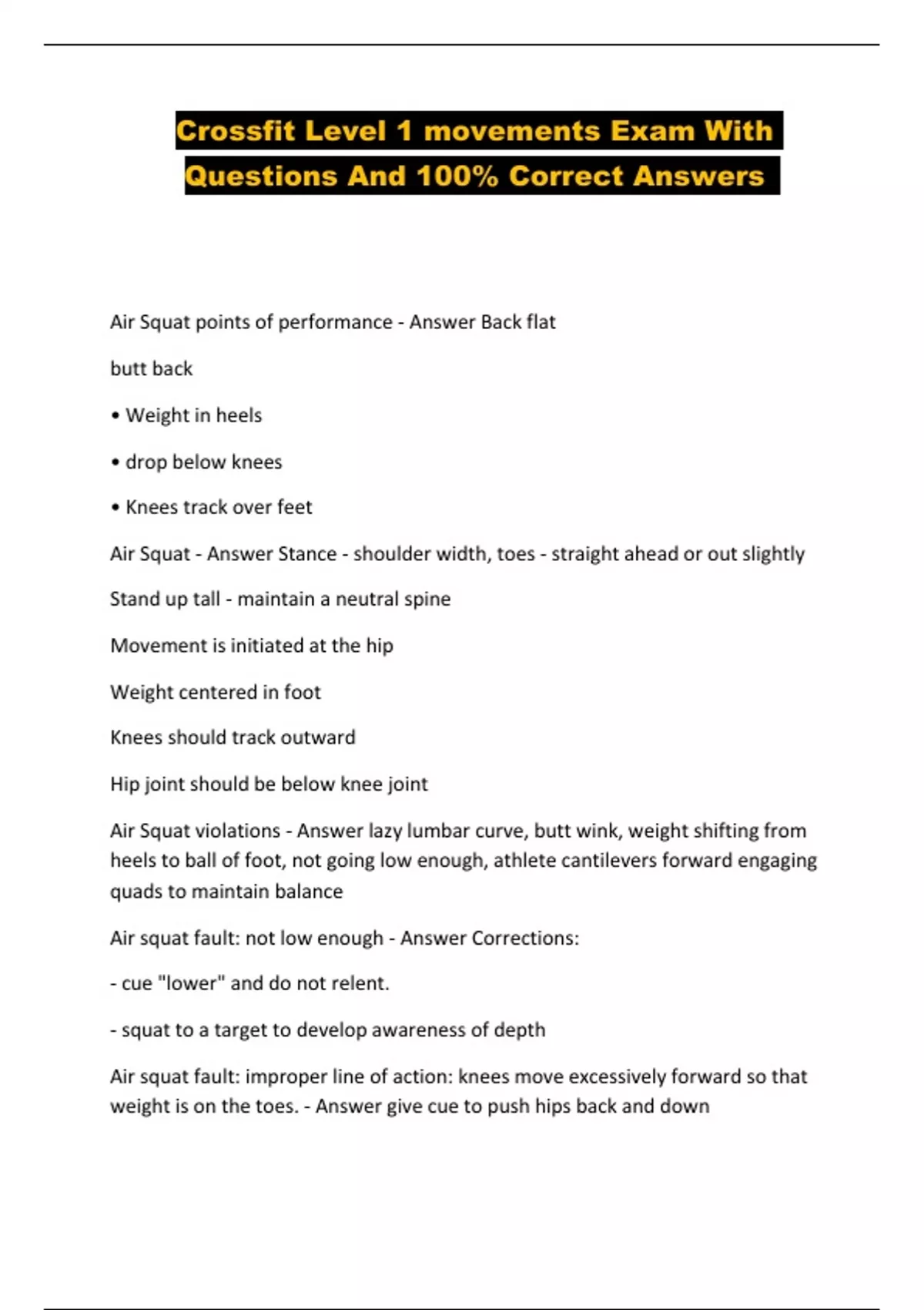 Crossfit Level 1 movements Exam With Questions And 100% Correct Answers ...