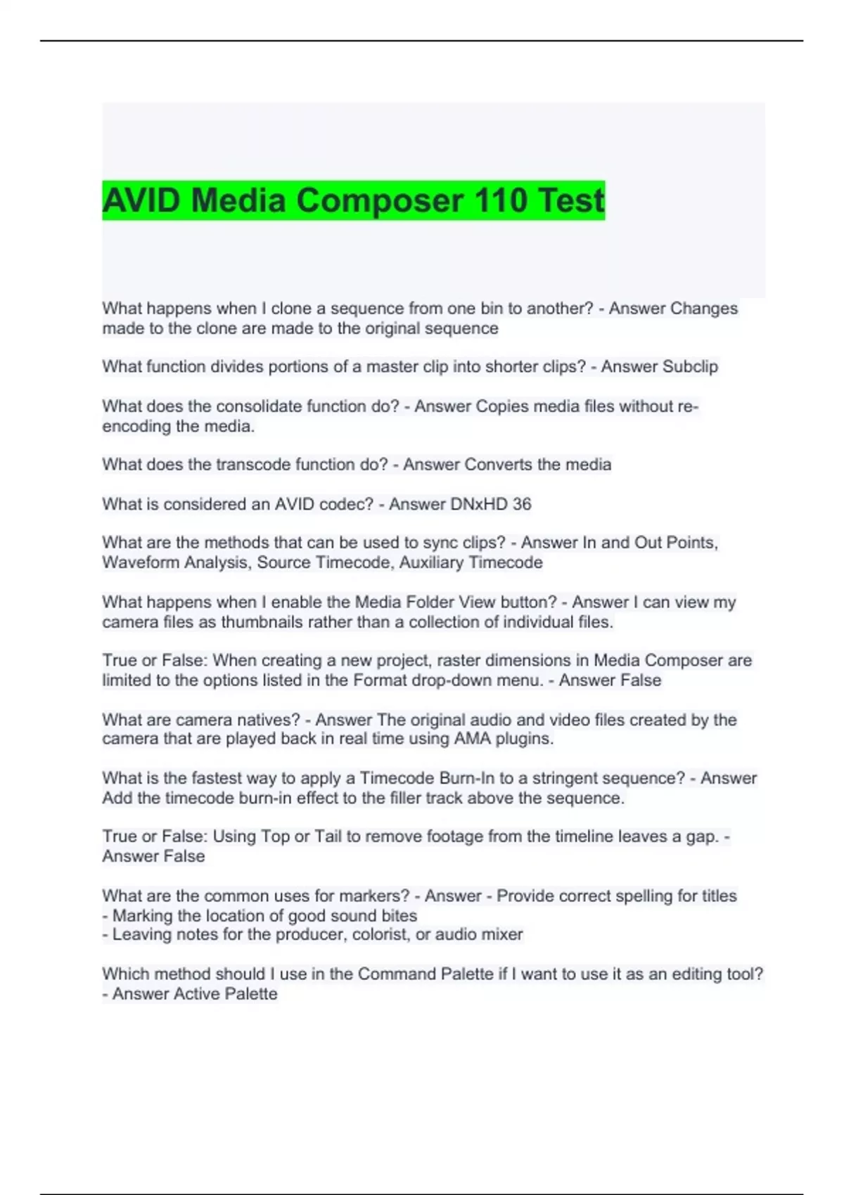 AVID MC 110 /AVID 110 Exam Bundle