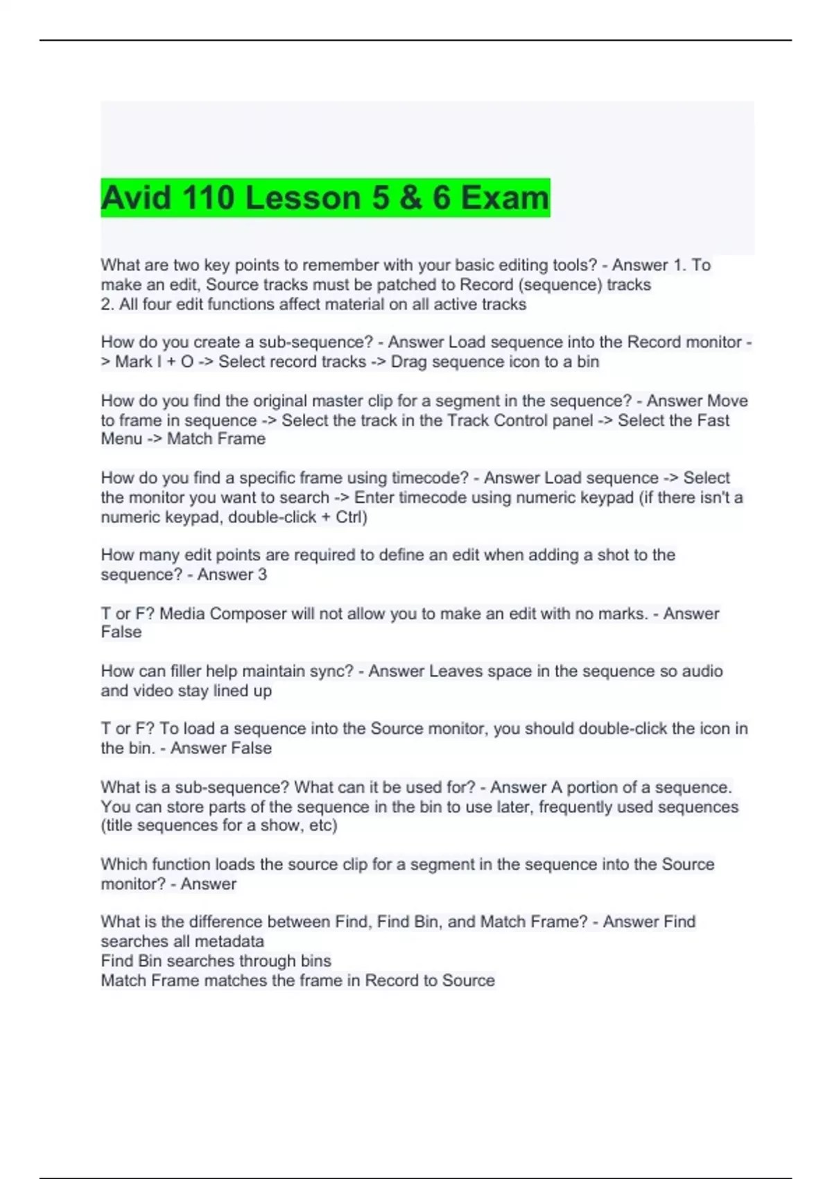 Avid 110 Lesson 5 & 6 Exam