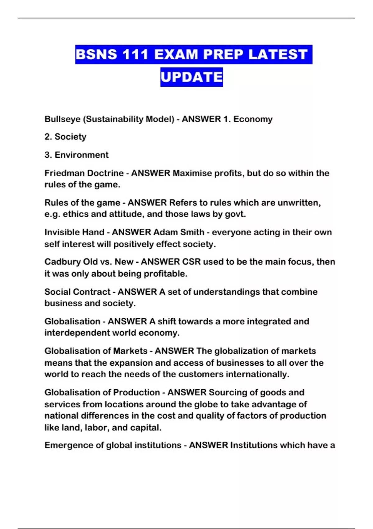 BSNS 111 EXAM PREP LATEST UPDATE...