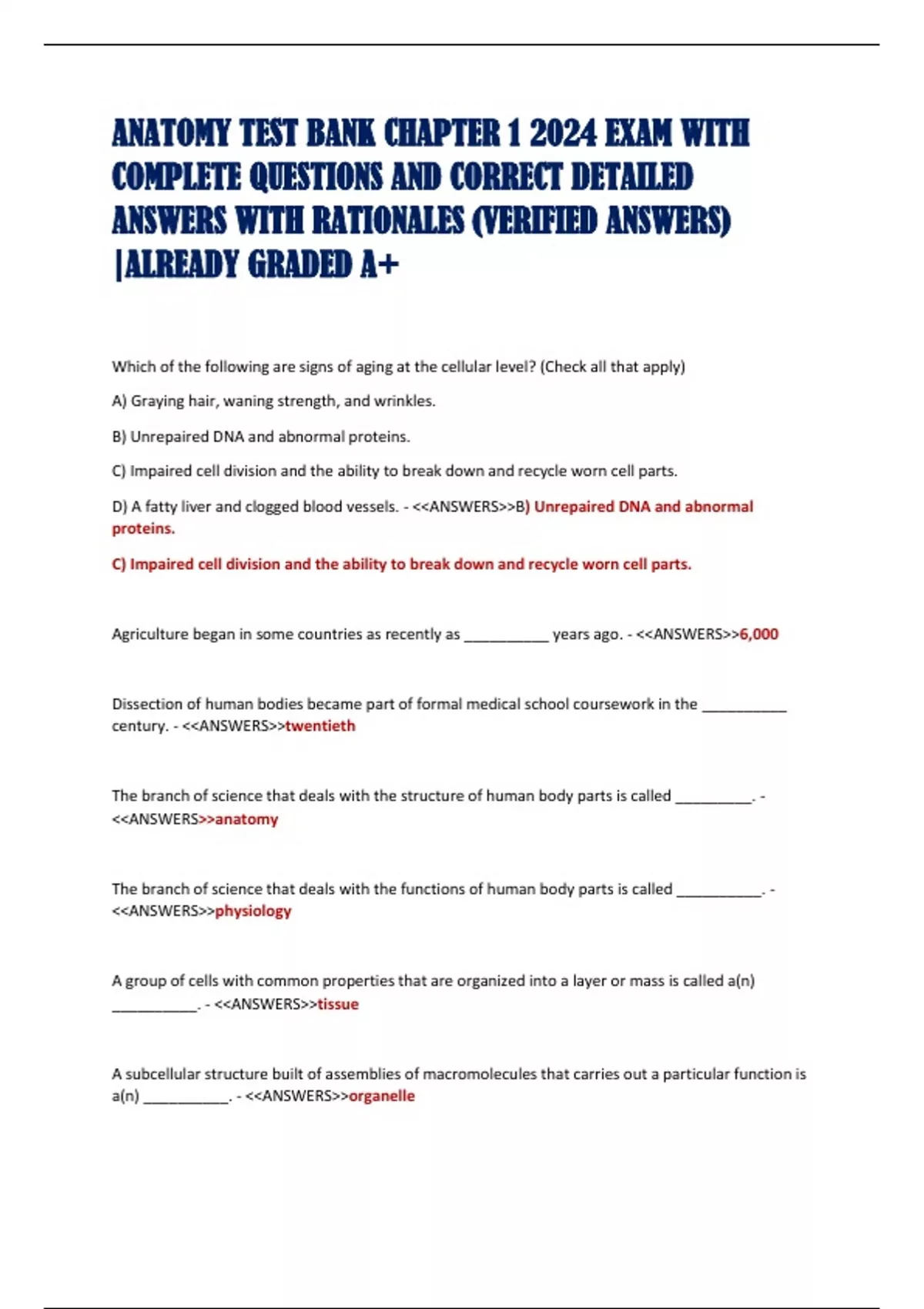 ANATOMY TEST BANK CHAPTER 1 2024 EXAM WITH COMPLETE QUESTIONS AND CORRECT DETAILED ANSWERS WITH RATIONALES (VERIFIED ANSWERS) |ALREADY GRADED A+ANATOMY TEST BANK CHAPTER 1 2024 EXAM WITH COMPLETE QUESTIONS AND CORRECT DETAILED ANSWERS WITH RATIONALES (VERIFIED ANSWERS) |ALREADY GRADED A+ANATOMY TEST BANK CHAPTER 1 2024 EXAM WITH COMPLETE QUESTIONS AND CORRECT DETAILED ANSWERS WITH RATIONALES (VERIFIED ANSWERS) |ALREADY GRADED A+ANATOMY TEST BANK CHAPTER 1 2024 EXAM WITH COMPLETE QUESTIONS AND CORRECT DETAILED ANSWERS WITH RATIONALES (VERIFIED ANSWERS) |ALREADY GRADED A+ANATOMY TEST BANK CHAPTER 1 2024 EXAM WITH COMPLETE QUESTIONS AND CORRECT DETAILED ANSWERS WITH RATIONALES (VERIFIED ANSWERS) |ALREADY GRADED A+