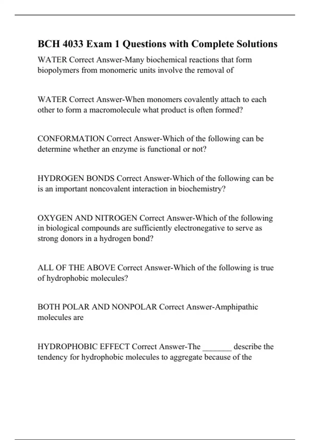BCH 4033 Exam 1 Questions with Complete Solutions