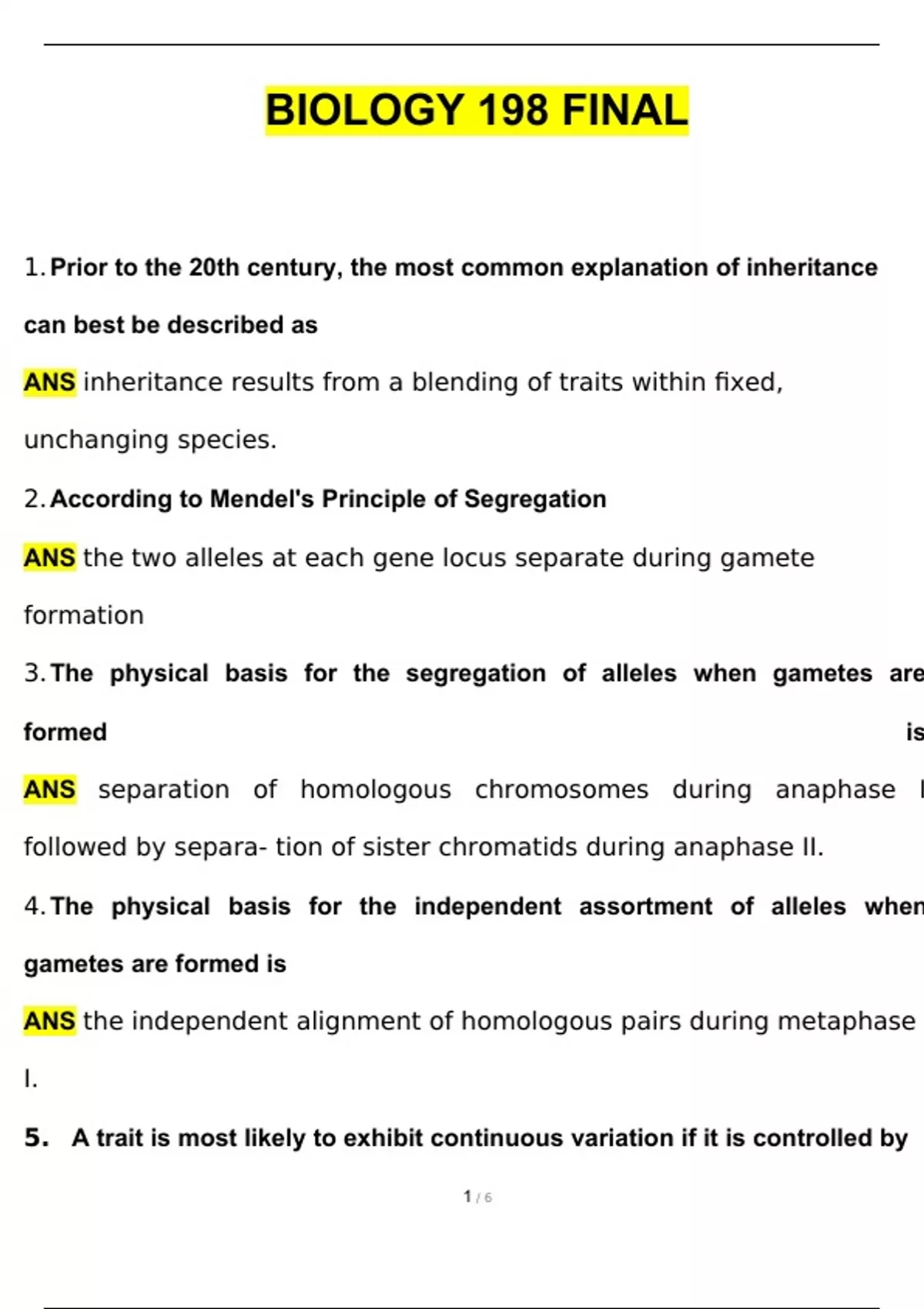 BIOLOGY 198 FINAL EXAM Questions with 100% Correct Answers | Verified | Latest Update