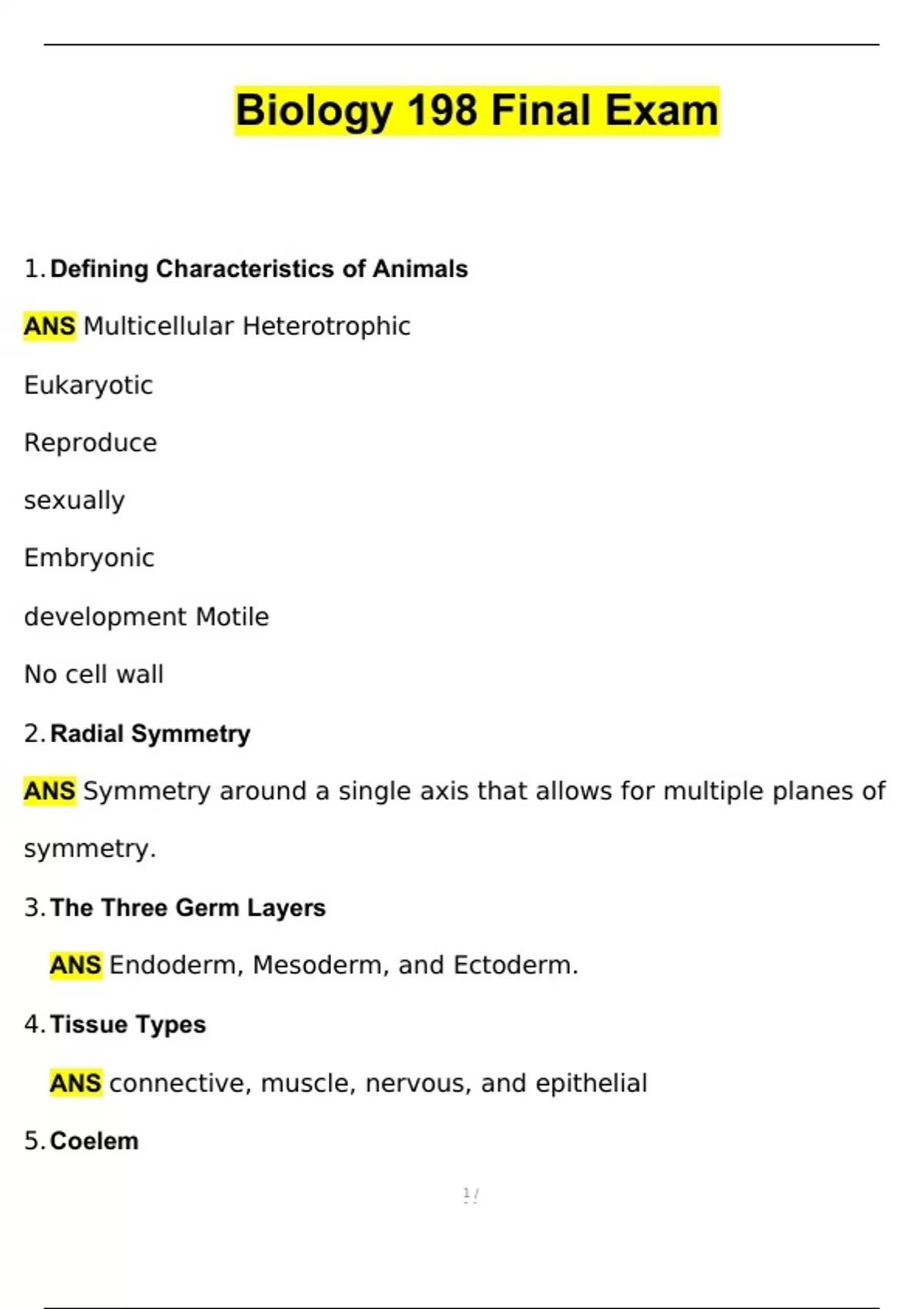 Biology 198 Final Exam Questions with 100% Correct Answers | Verified | Latest Update