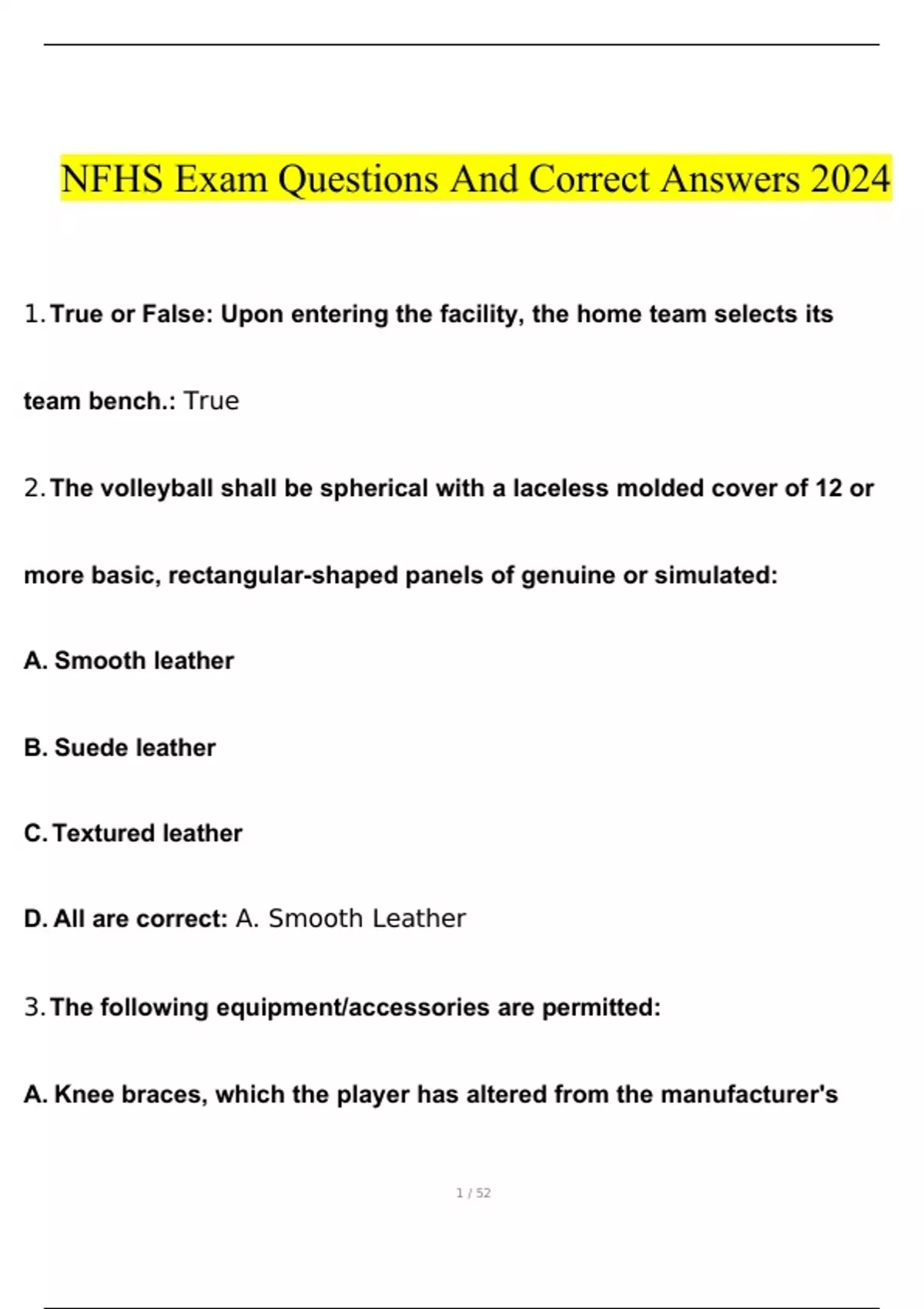 NFHS Exam Questions and Correct Answers Latest Updates 2024