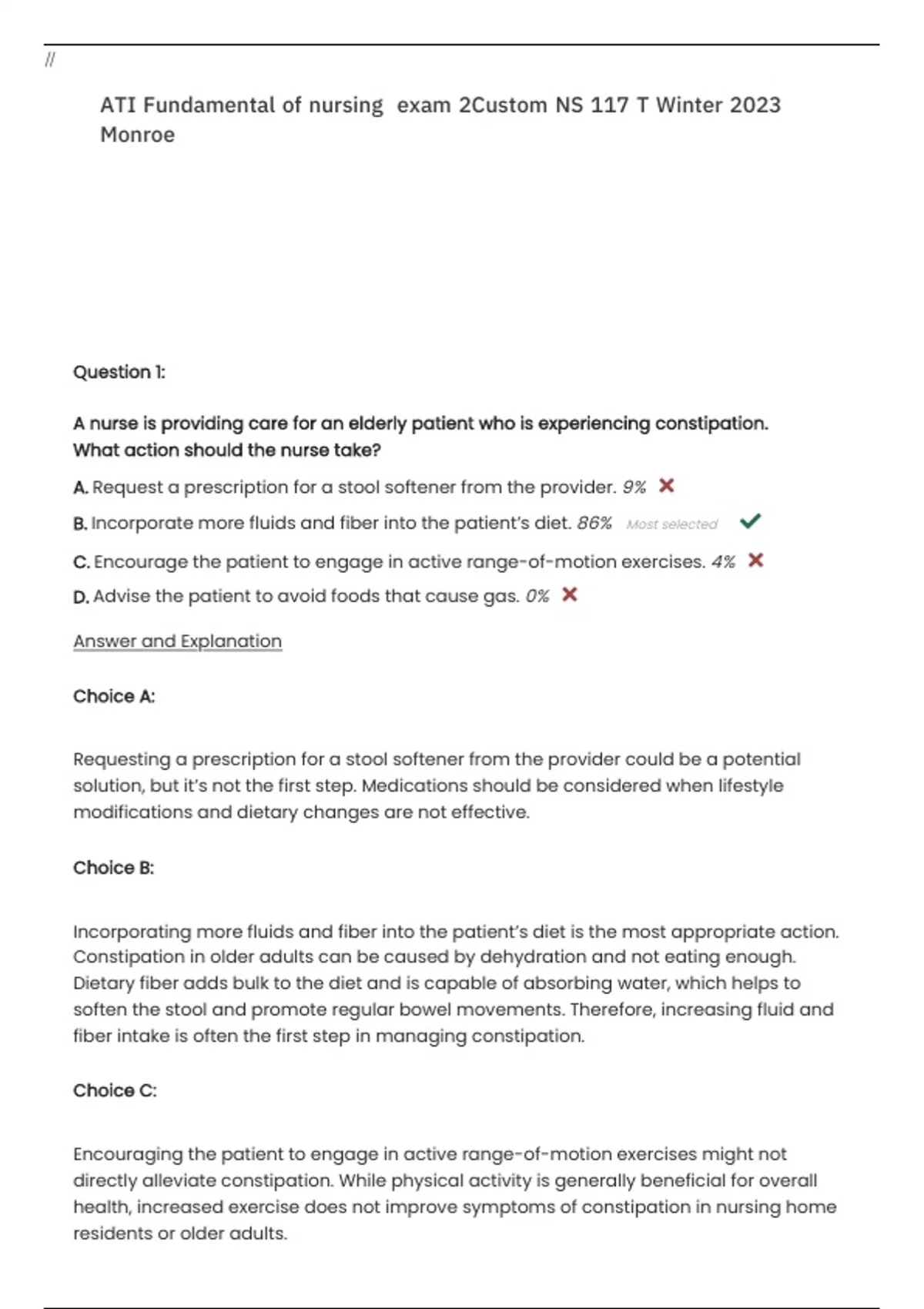 ATI Fundamental of nursing exam 2Custom NS 117 T Winter 2023 Monroe Questions and well -detailed explanation