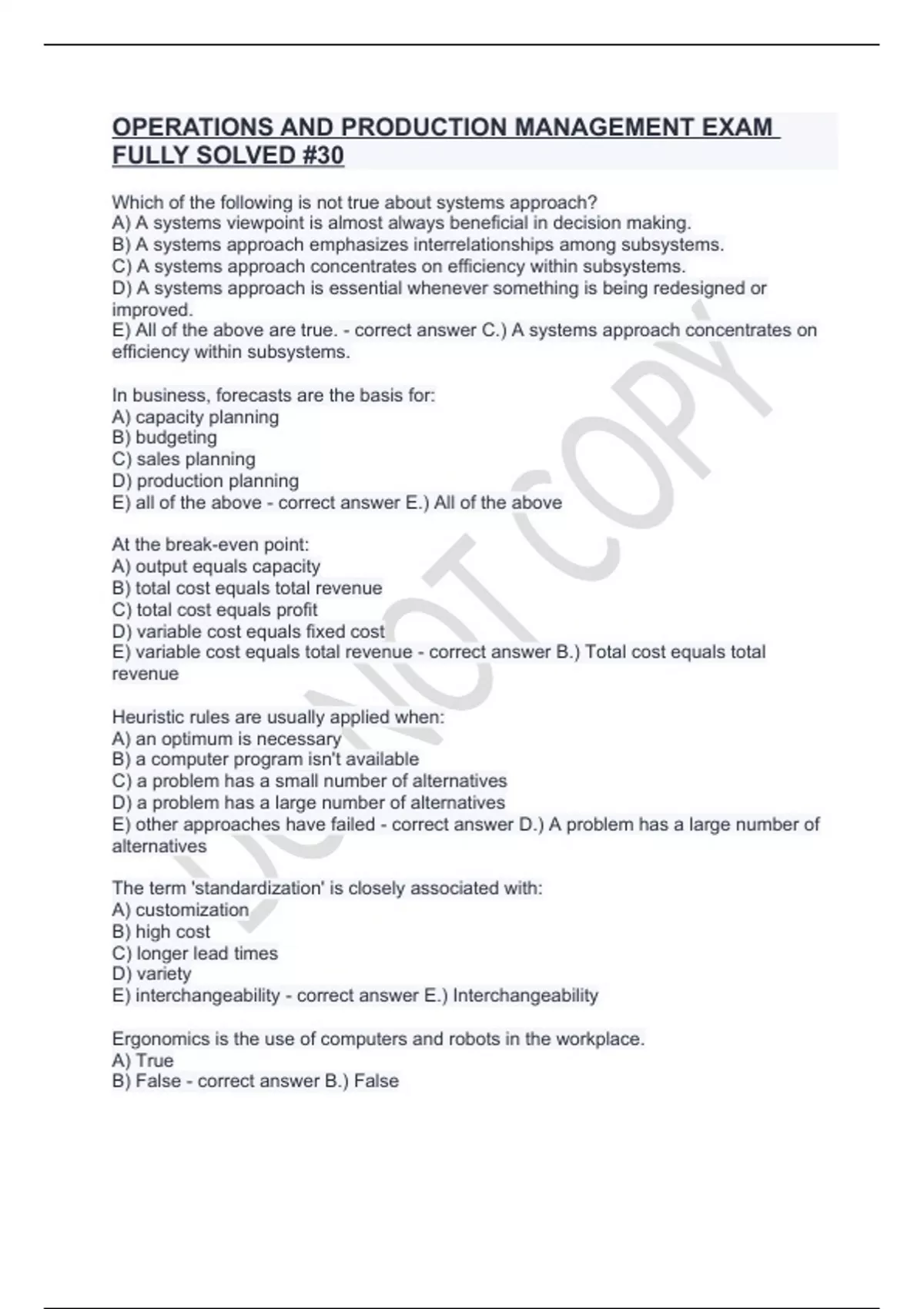 OPERATIONS AND PRODUCTION MANAGEMENT EXAM FULLY SOLVED #30.