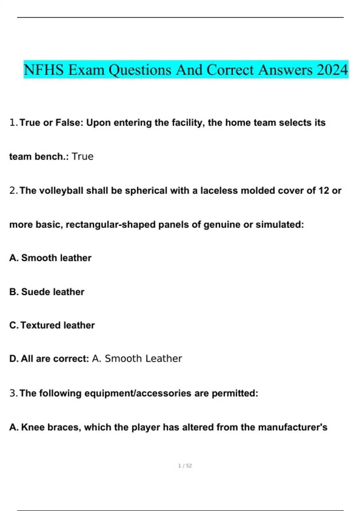 NFHS Exam Questions and Correct Answers Latest Updates 2024