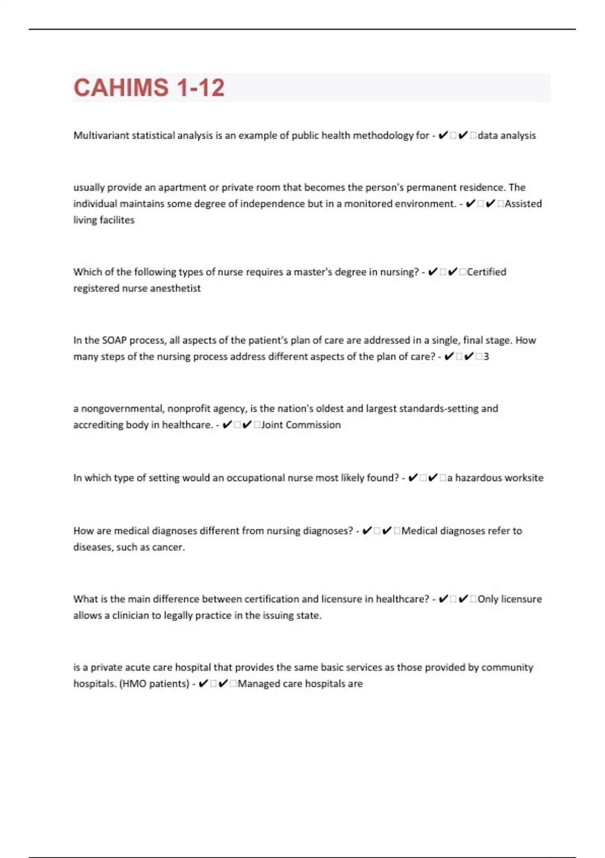 CAHIMS 1-12|193 Questions with 100% Correct Answers | Verified | Updated 2024