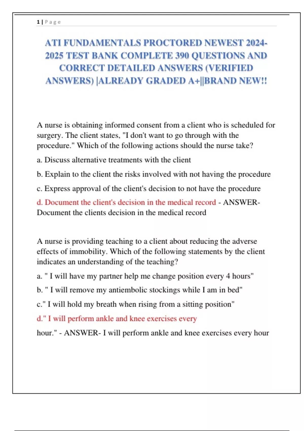 ATI FUNDAMENTALS PROCTORED NEWEST TEST BANK COMPLETE 390 QUESTIONS AND CORRECT DETAILED ANSWERS (VERIFIED ANSWERS) |ALREADY GRADED A+||BRAND NEW!!
