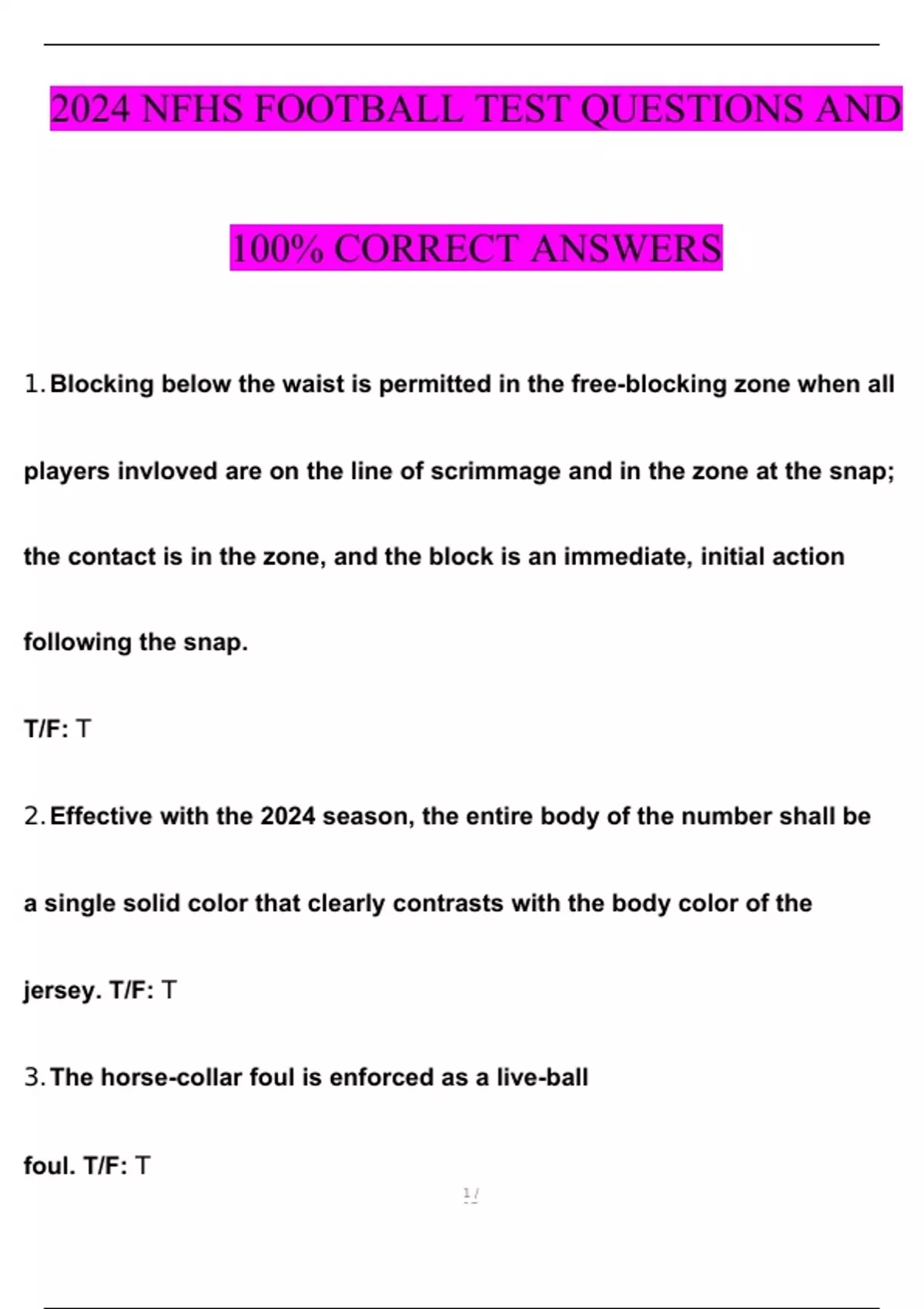 NFHS FOOTBALL TEST EXAM 2024 WITH 100% CORRECT ANSWERS