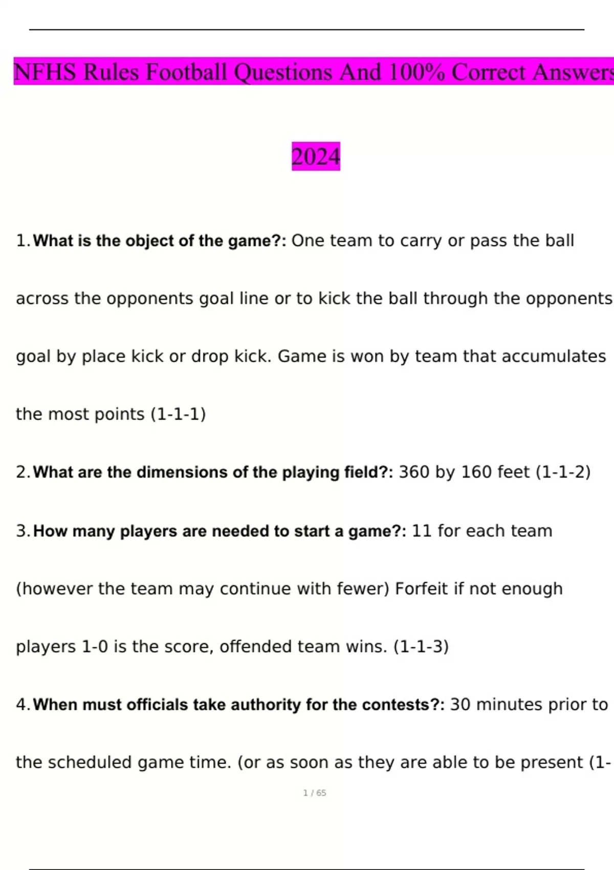 nfhs rules football exam 2024 with 100 correct an