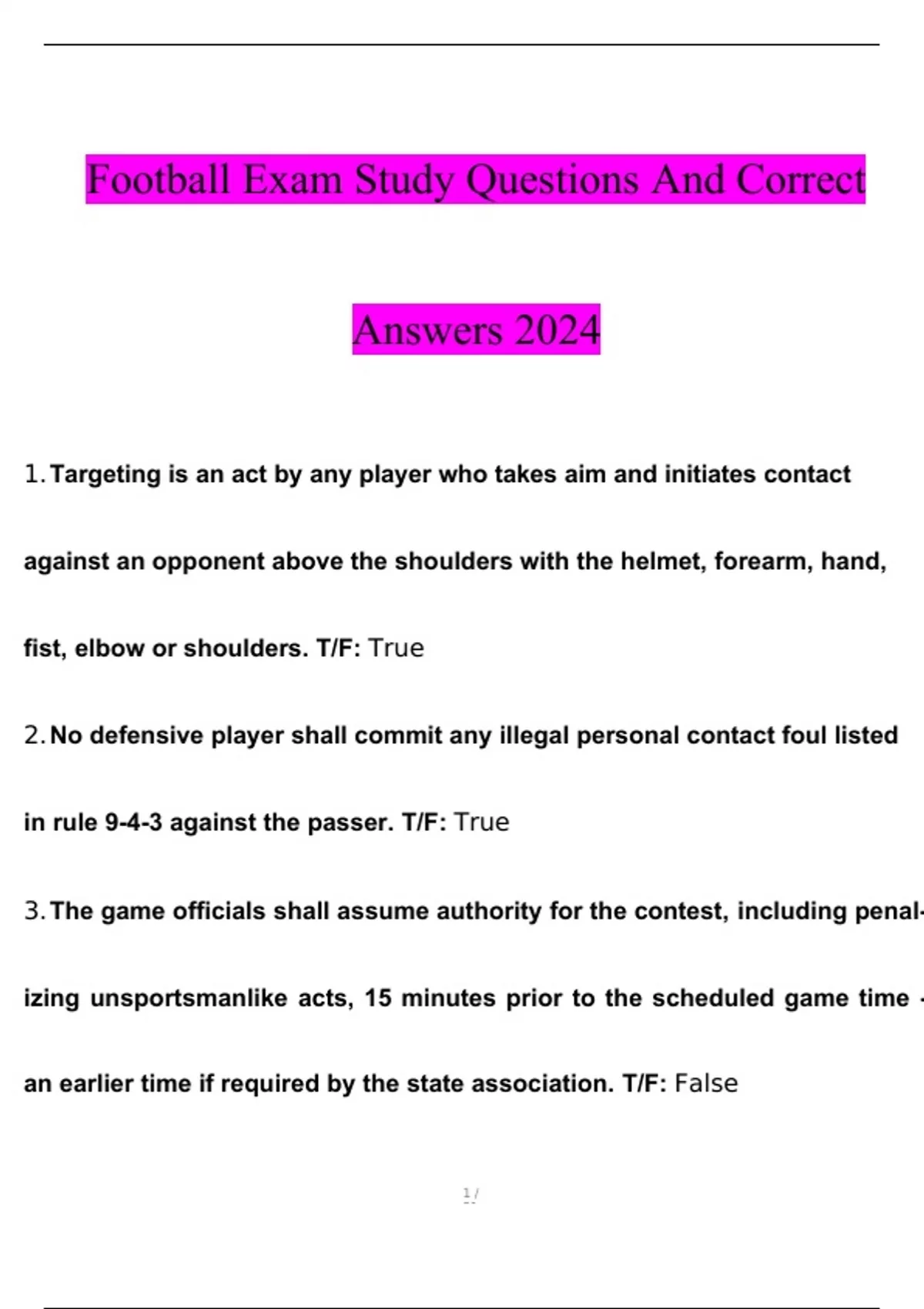 Football Exam Study With Questions and Answers 100% A+ Updated For Excellence. 2024