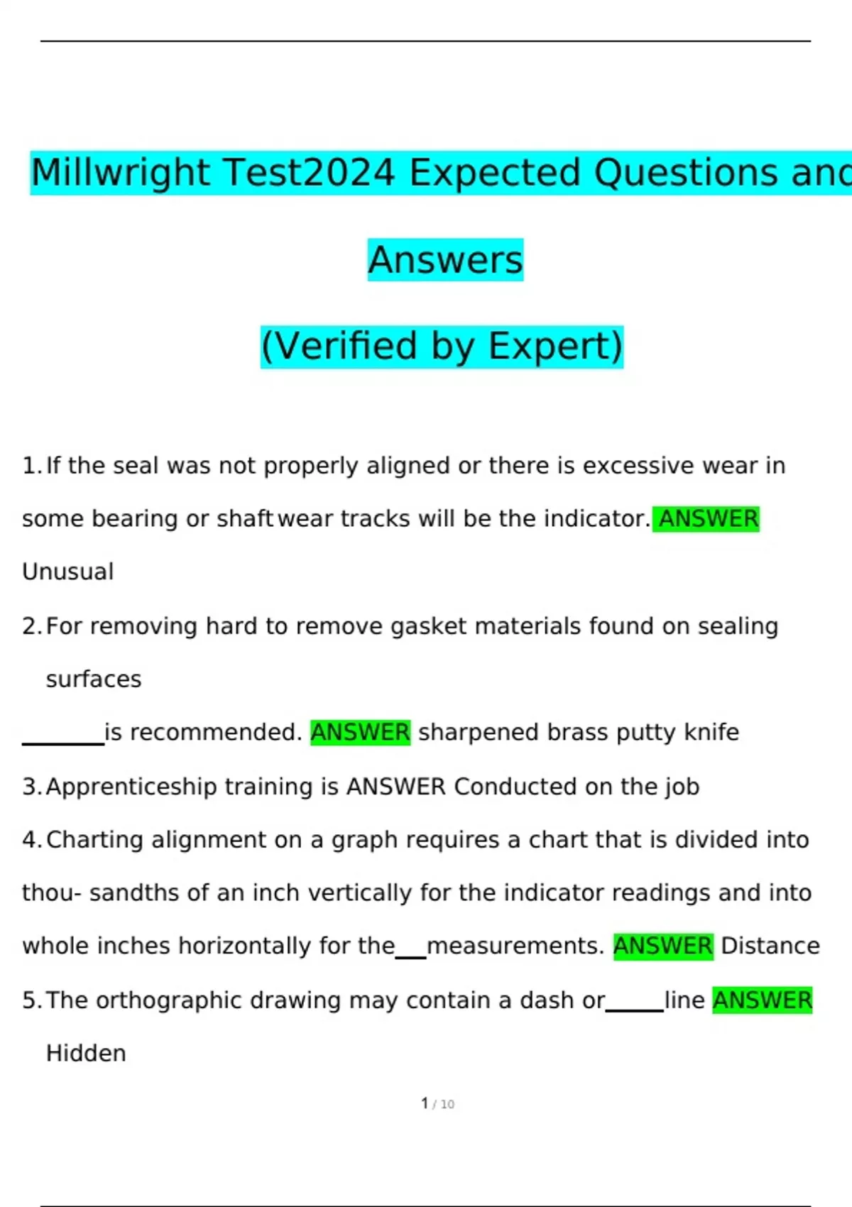 Millwright Test Exam 2024 Expected Questions and Answers (Verified by Expert) Millwright Test Exam 2024 Expected Questions and Answers (Verified by Expert) Millwright Test Exam 2024 Expected Questions and Answers (Verified by Expert) Millwright Test Exam 2024 Expected Questions and Answers (Verified by Expert) Millwright Test Exam 2024 Expected Questions and Answers (Verified by Expert)