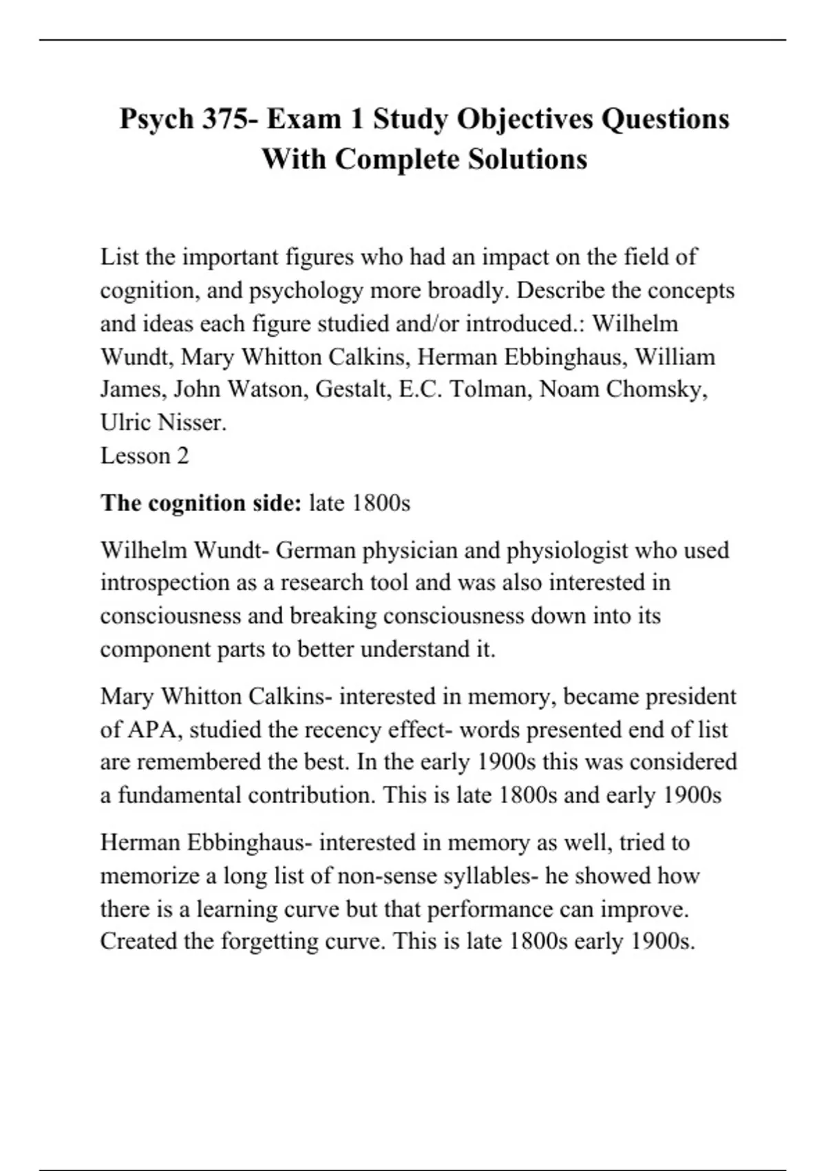 Psych 375- Exam 1 Study Objectives Questions With Complete Solutions