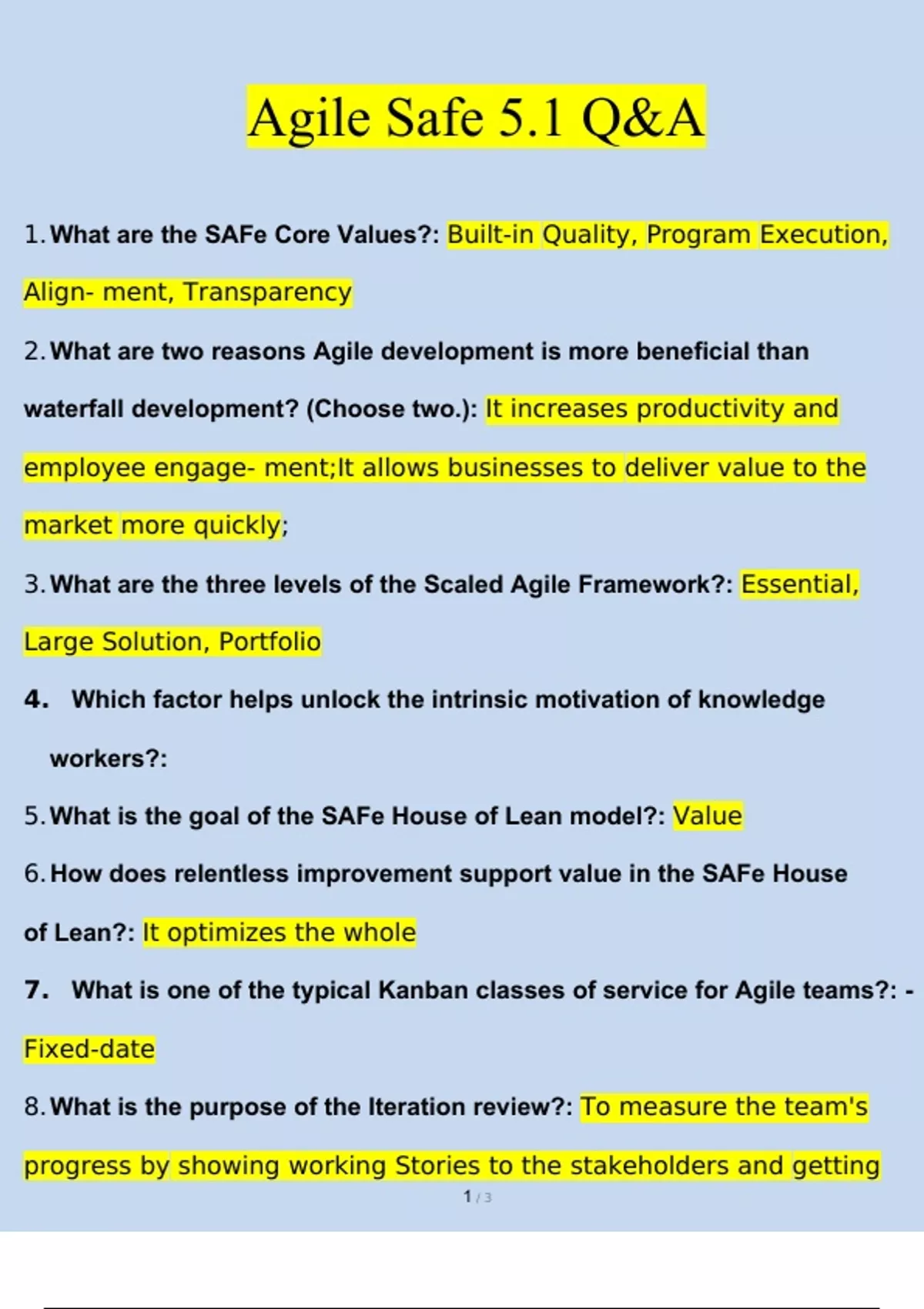 Agile Safe 5.1 QUESTIONS AND 100% VERIFIED ANSWERS LATEST |AGRADE 2024/2025