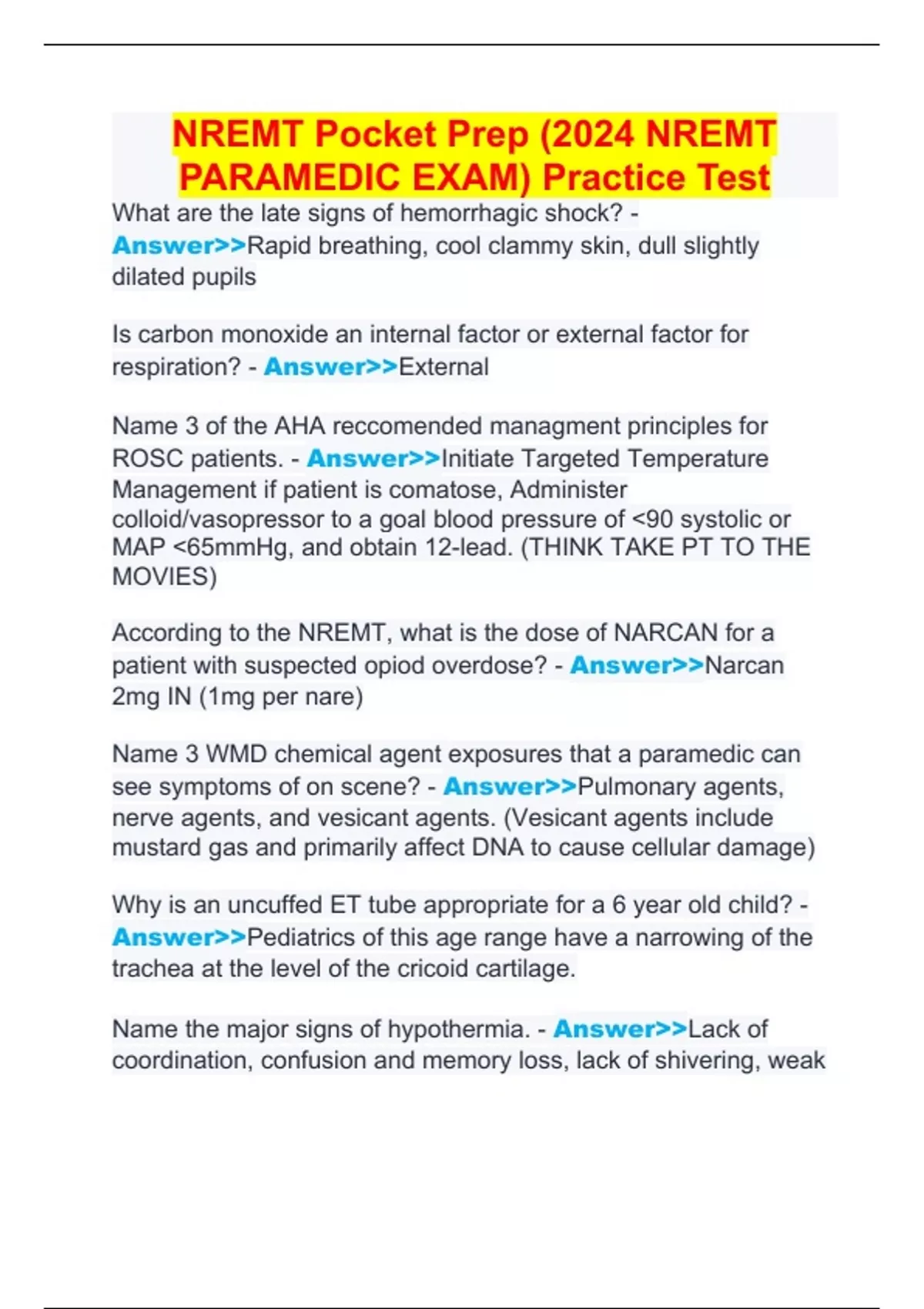 NREMT Pocket Prep (2024 NREMT PARAMEDIC EXAM) Practice Test